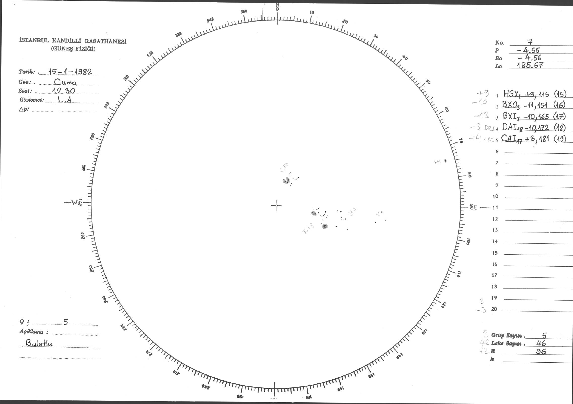 Güneş Lekesi Çizimi - 15.01.1982