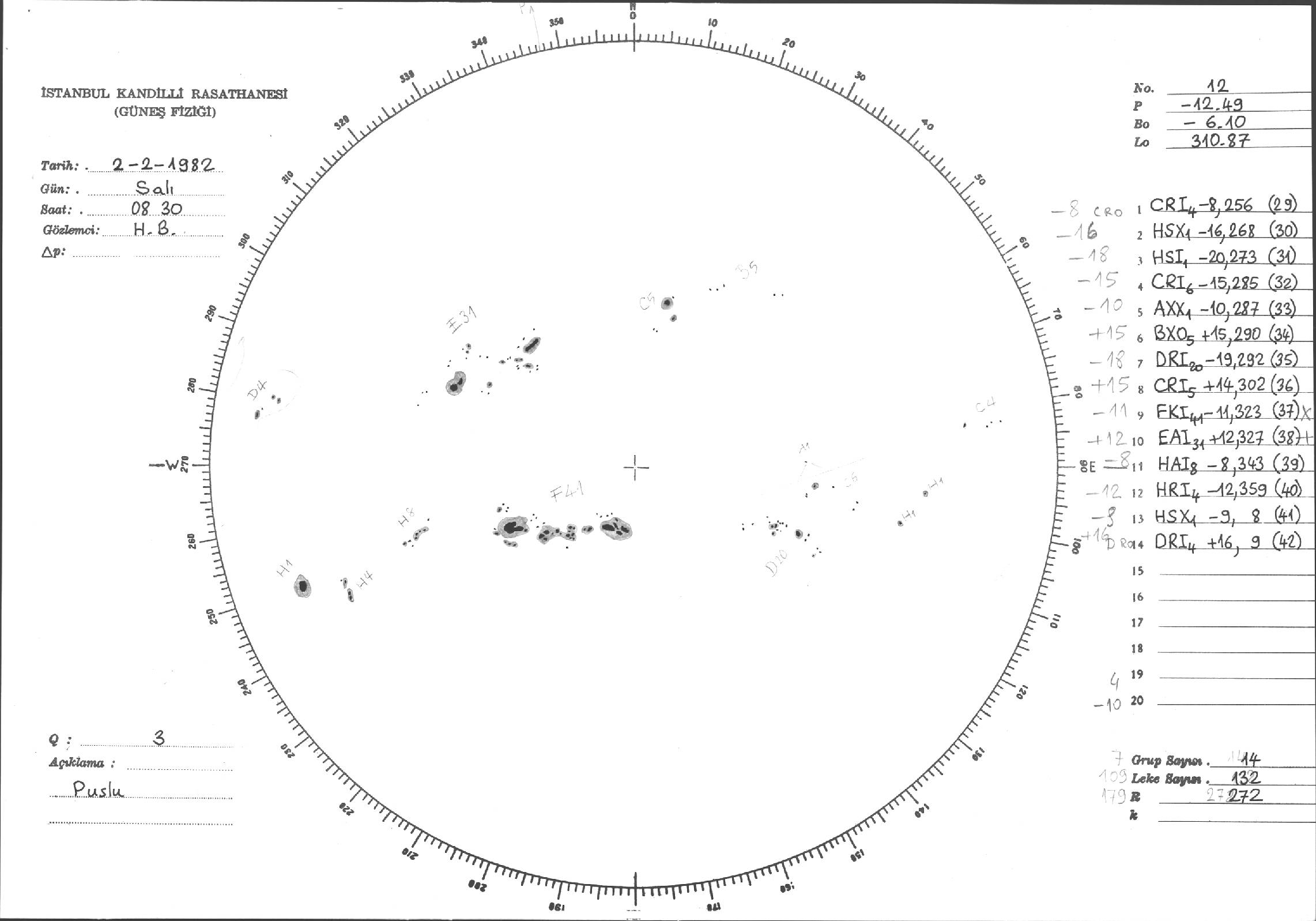Güneş Lekesi Çizimi - 02.02.1982