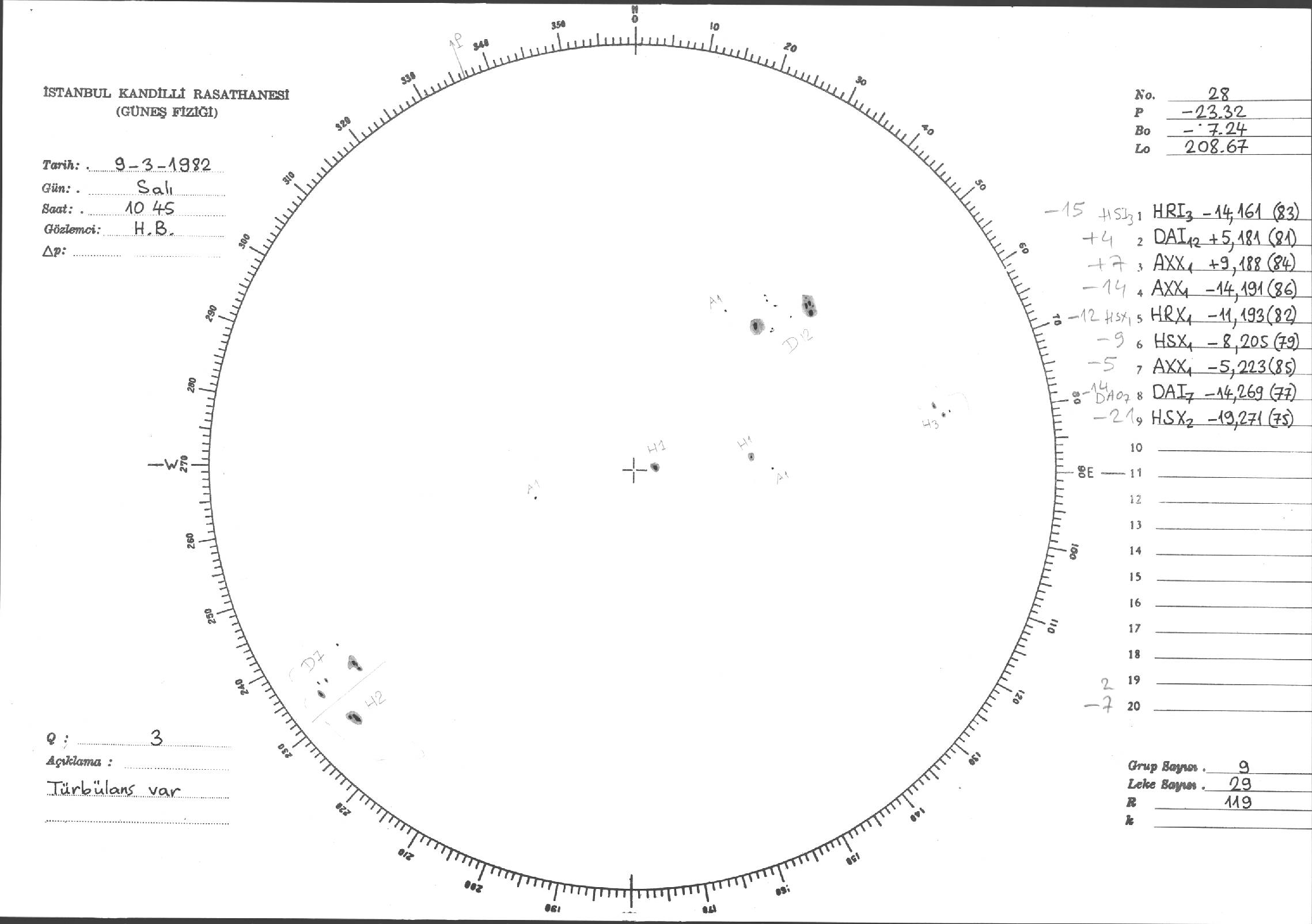 Güneş Lekesi Çizimi - 09.03.1982