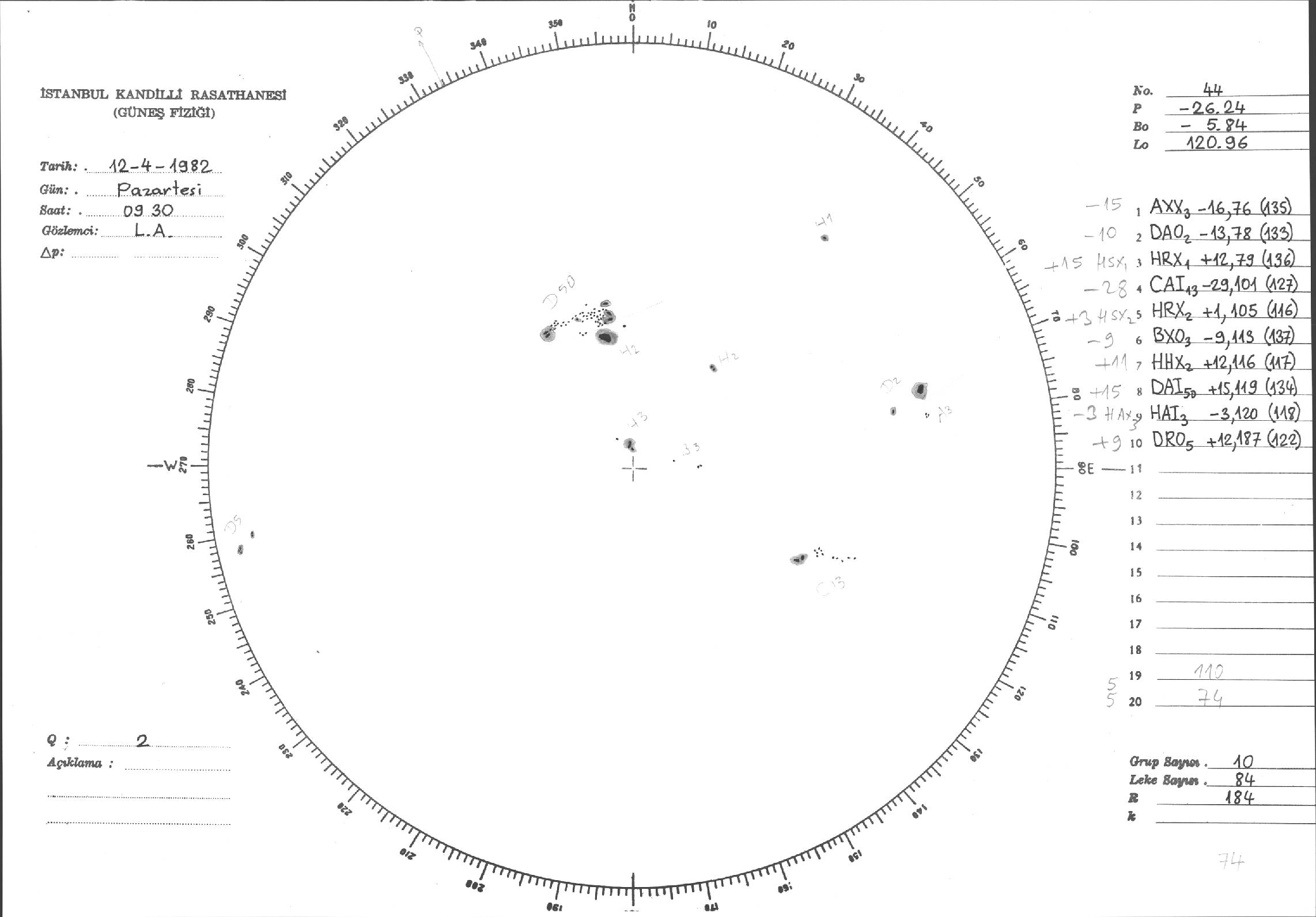 Güneş Lekesi Çizimi - 12.04.1982
