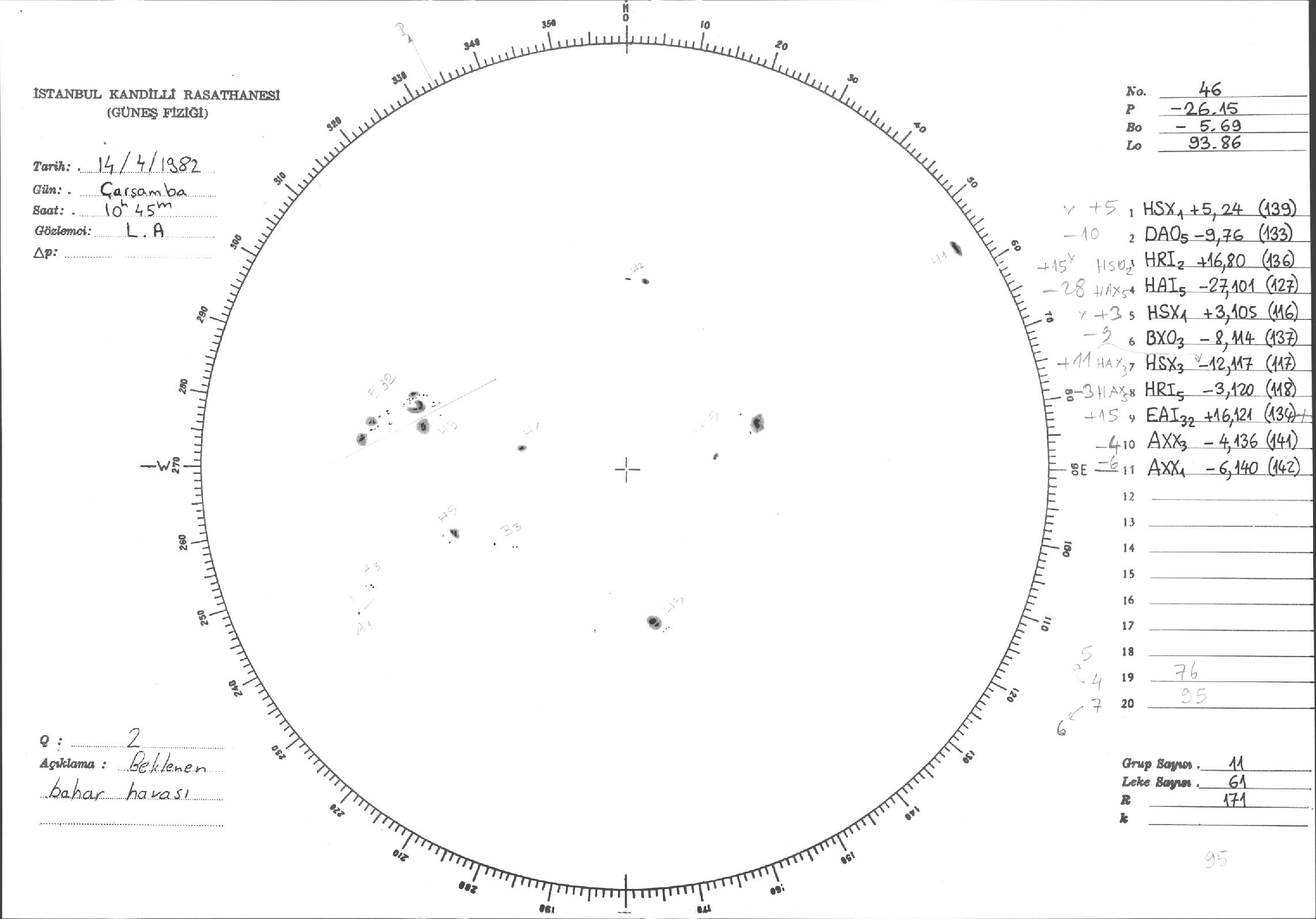 Güneş Lekesi Çizimi - 14.04.1982