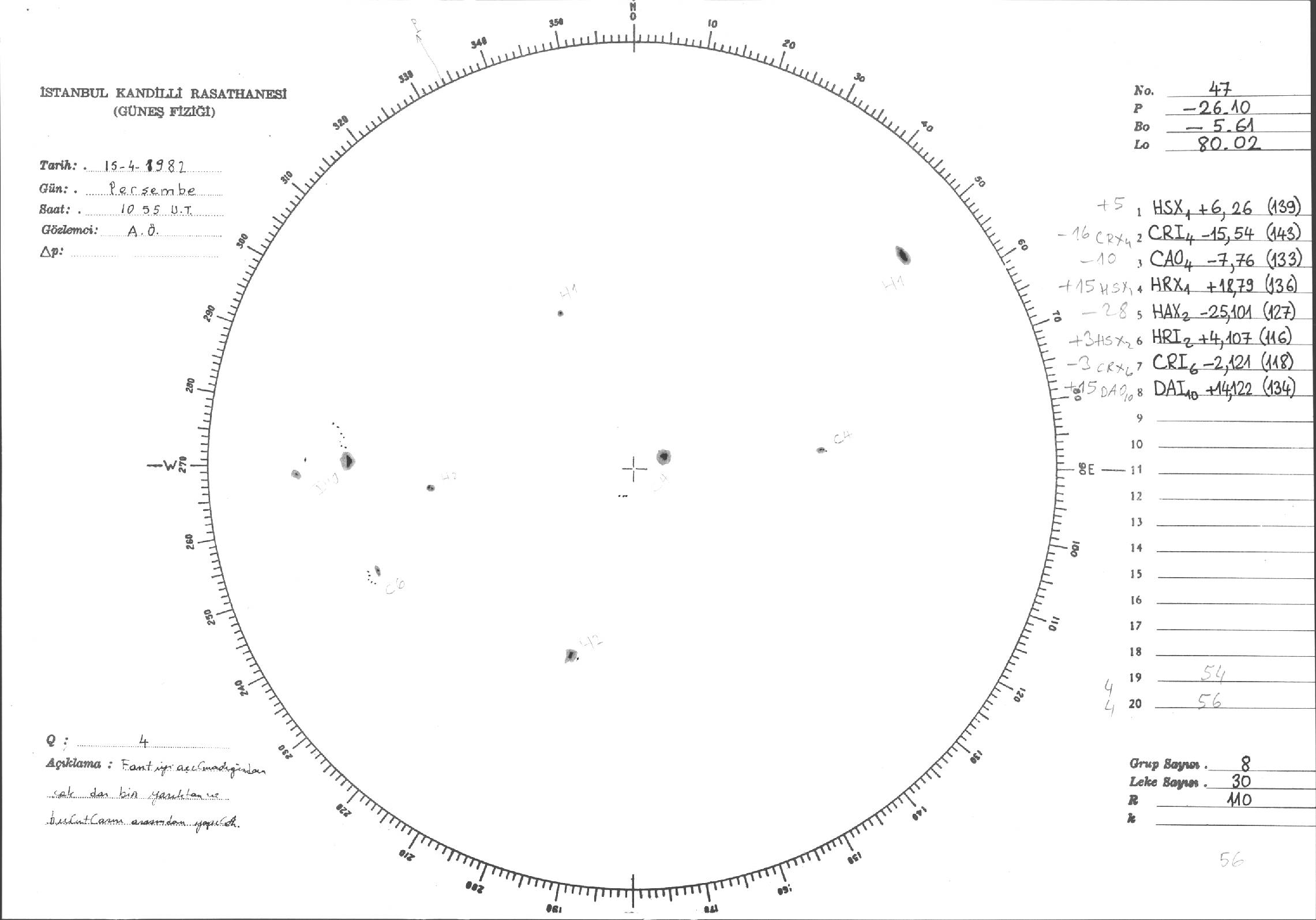 Güneş Lekesi Çizimi - 15.04.1982