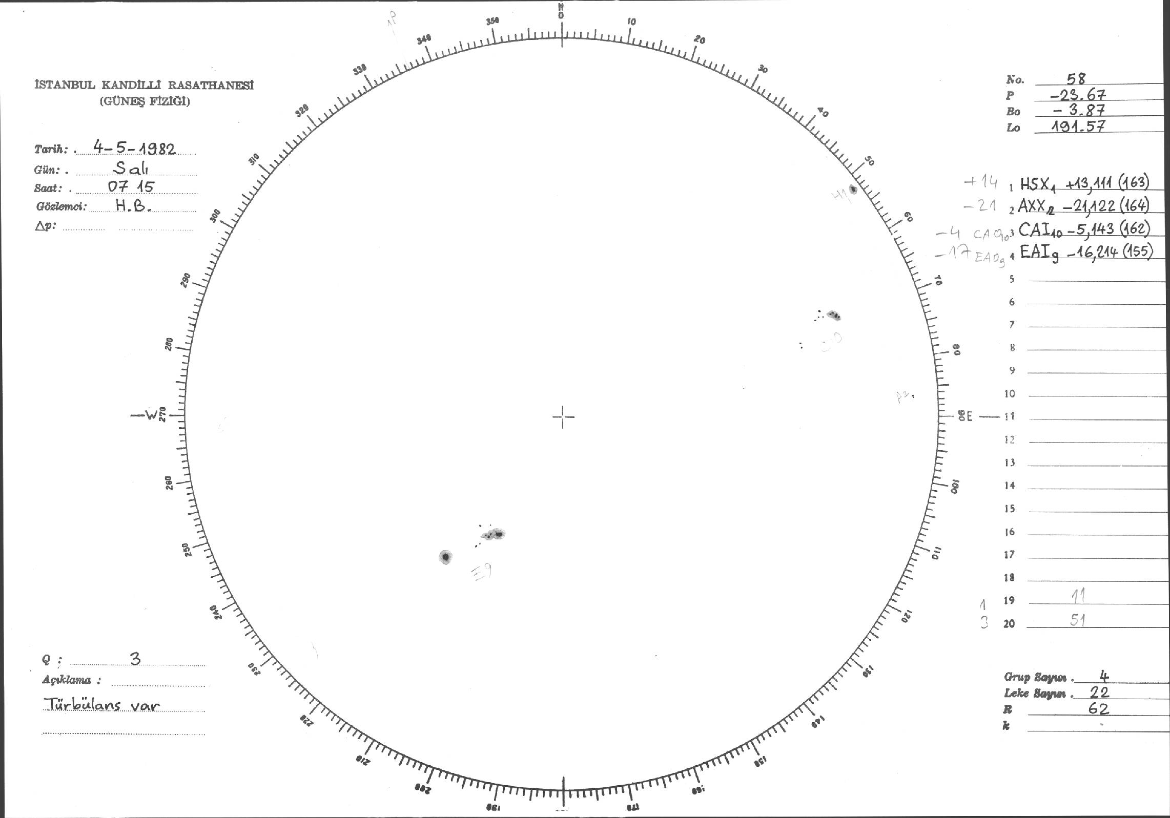 Güneş Lekesi Çizimi - 04.05.1982