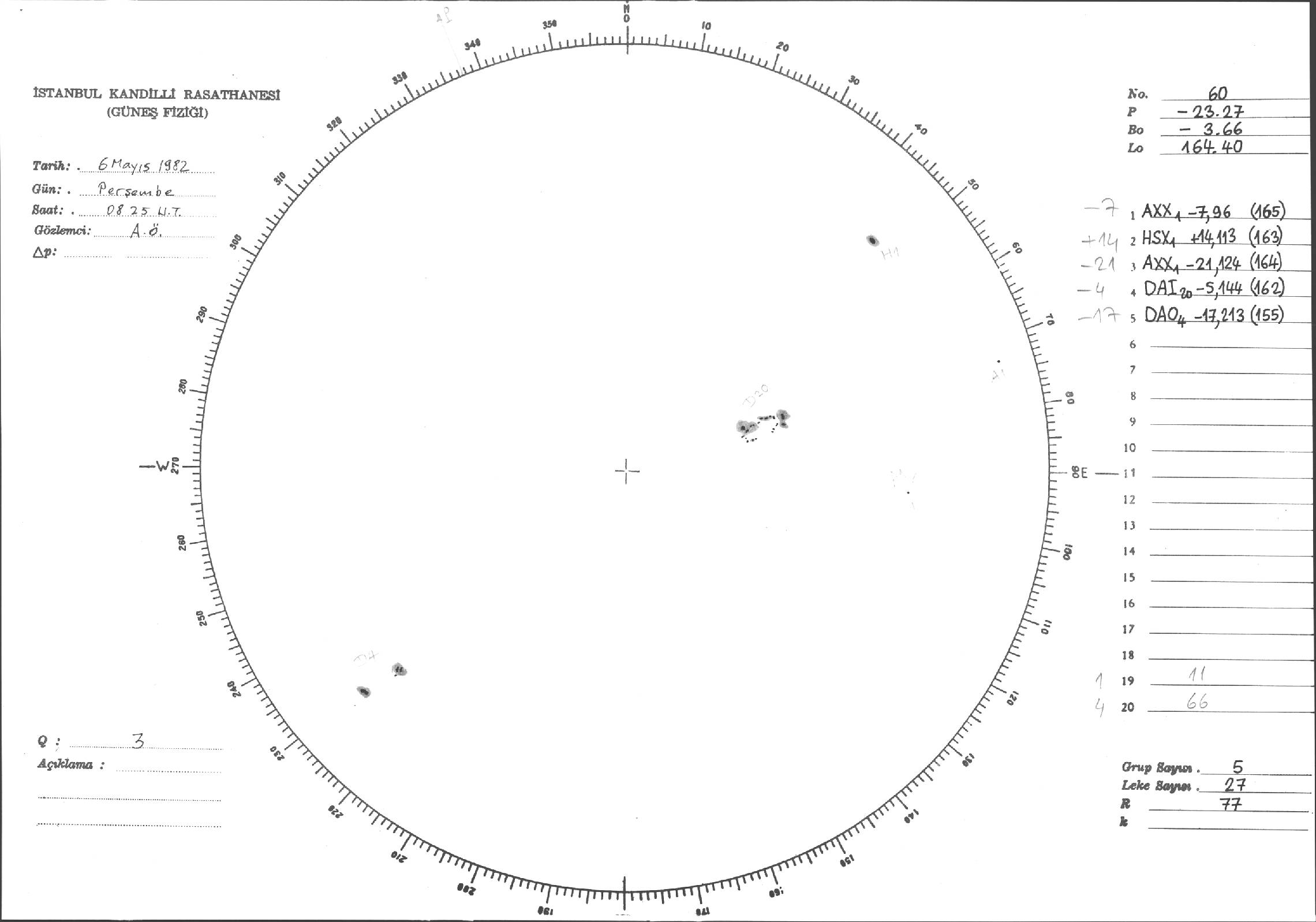 Güneş Lekesi Çizimi - 06.05.1982