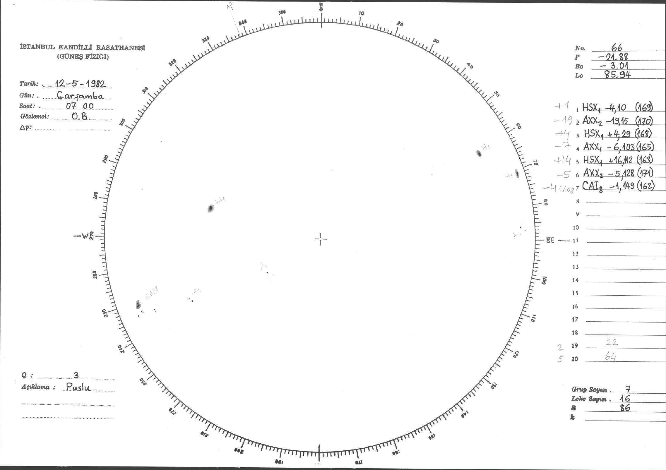 Güneş Lekesi Çizimi - 12.05.1982