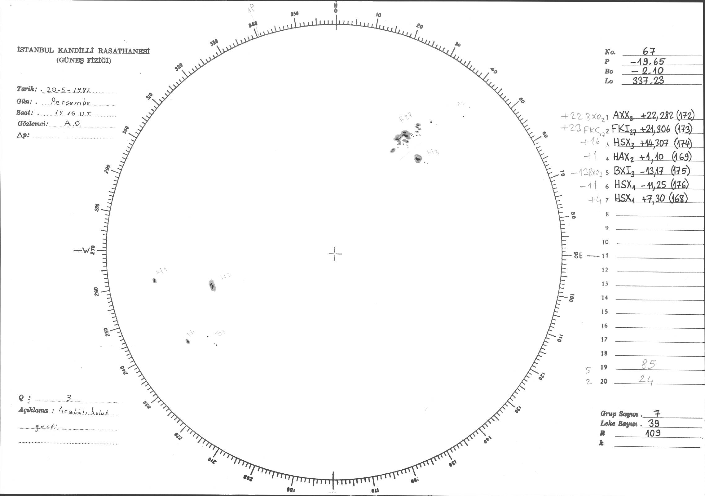 Güneş Lekesi Çizimi - 20.05.1982