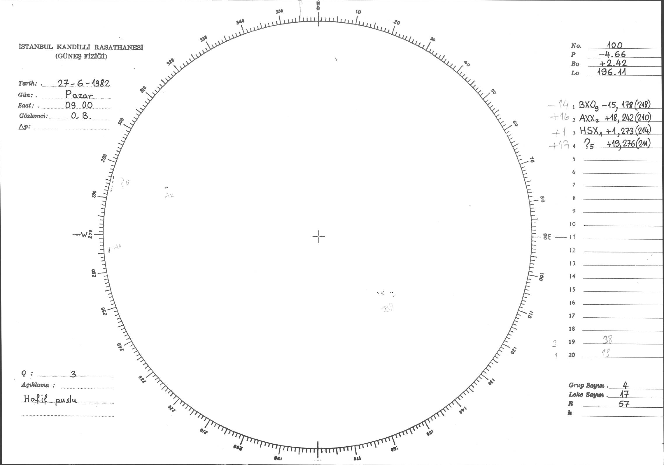 Güneş Lekesi Çizimi - 27.06.1982