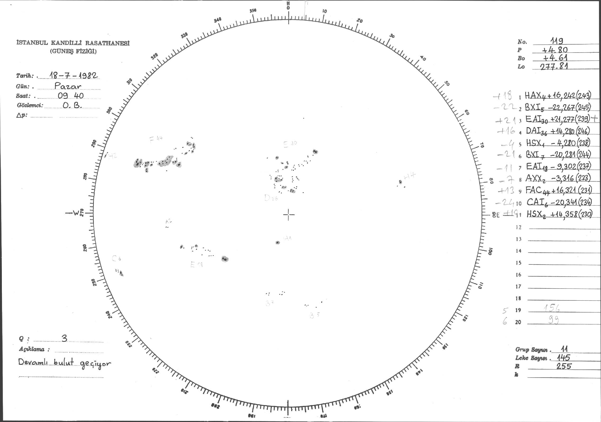 Güneş Lekesi Çizimi - 18.07.1982