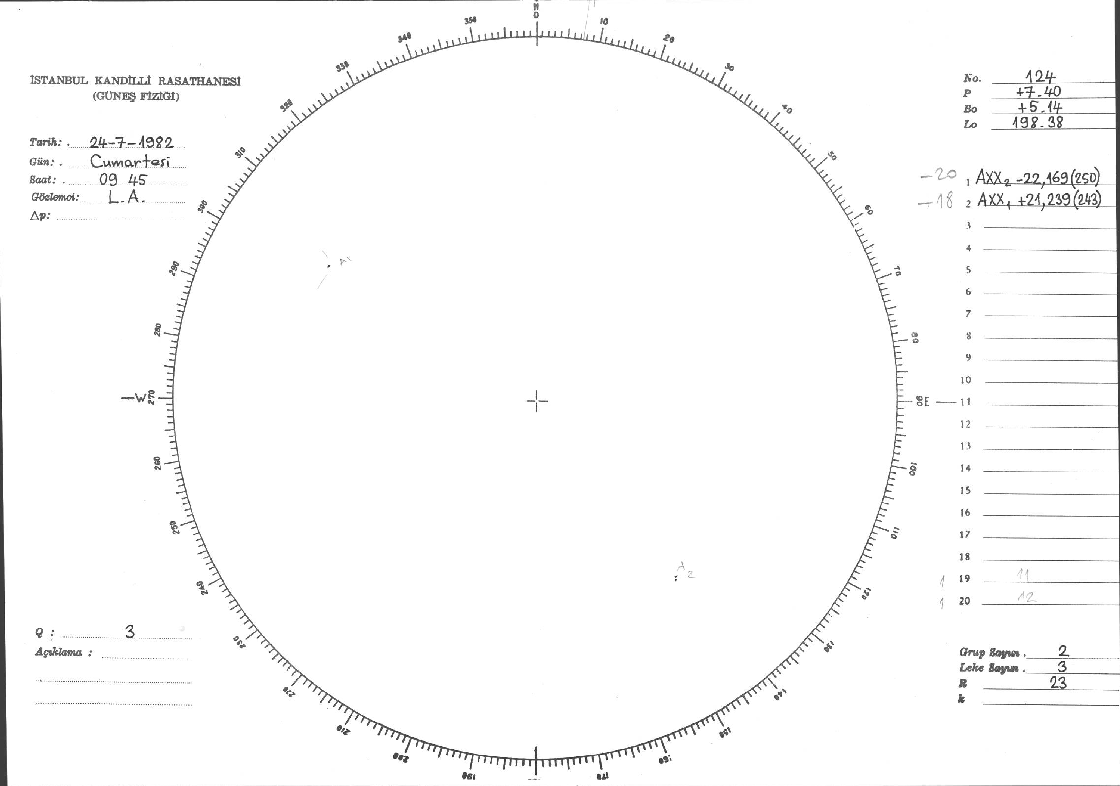 Güneş Lekesi Çizimi - 24.07.1982