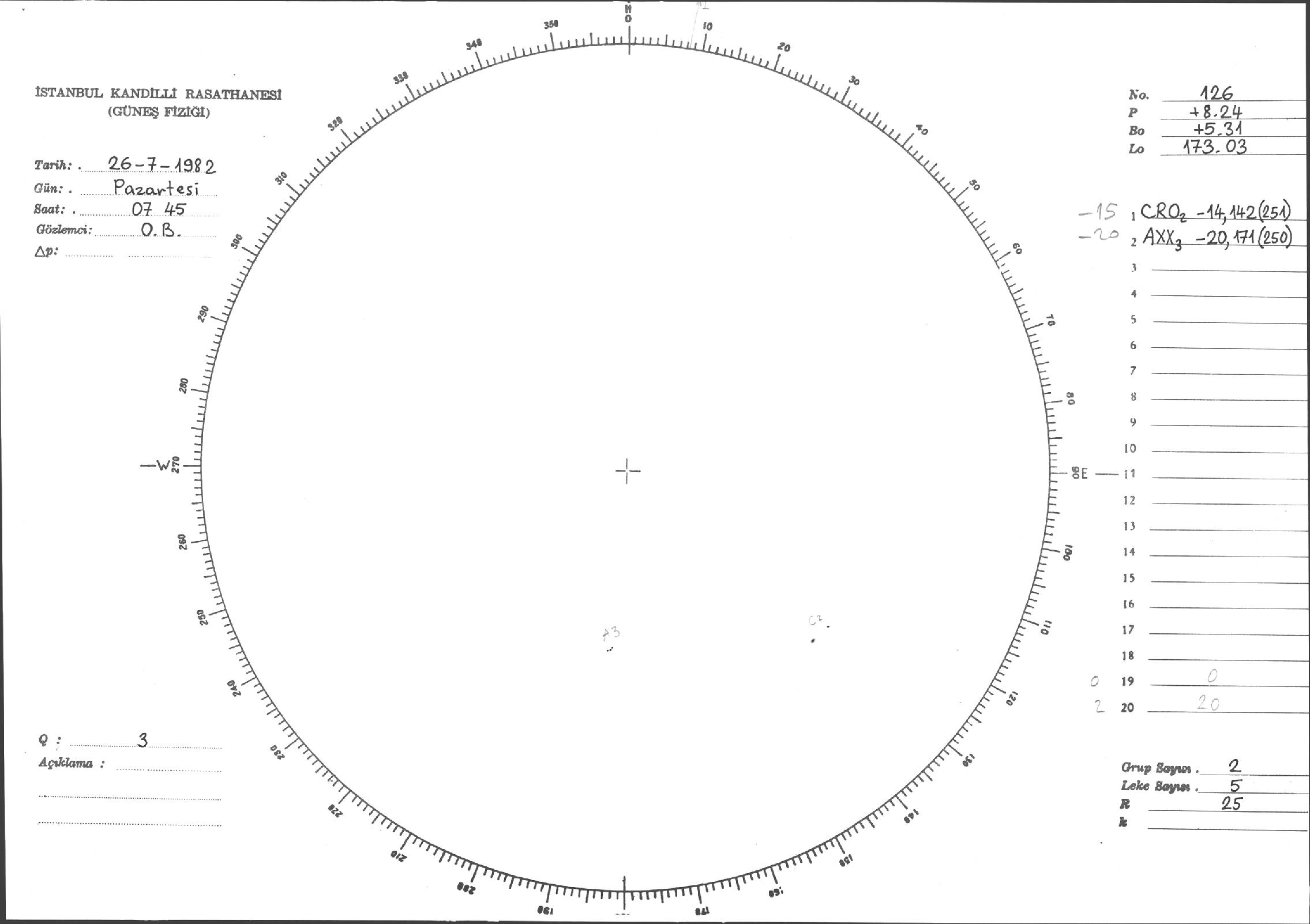 Güneş Lekesi Çizimi - 26.07.1982