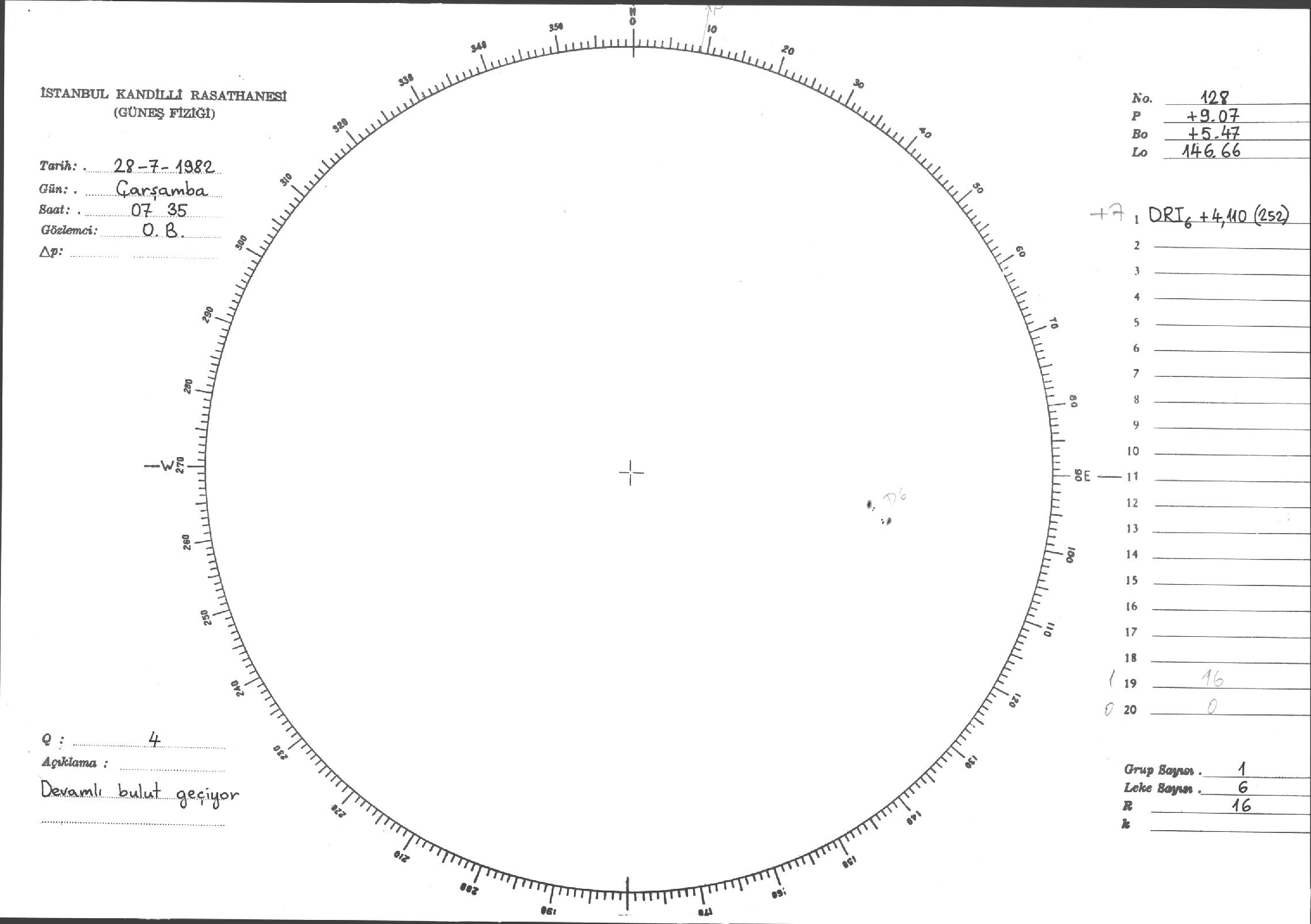 Güneş Lekesi Çizimi - 28.07.1982