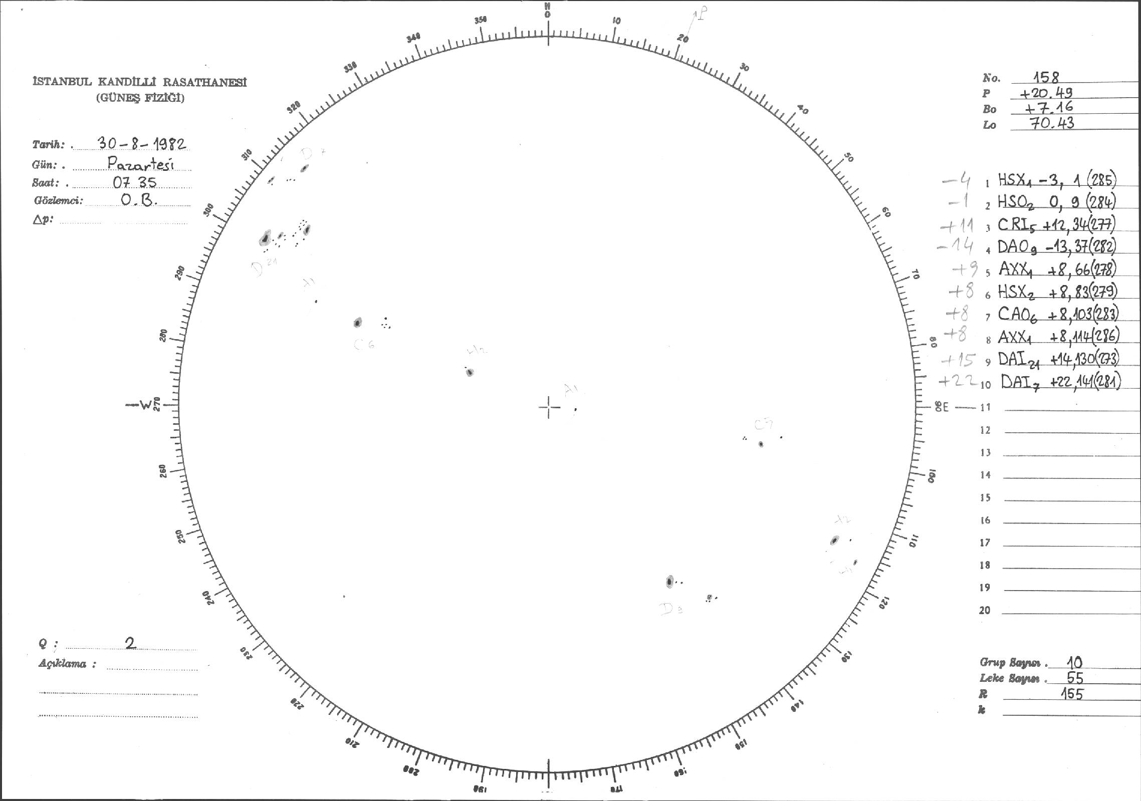 Güneş Lekesi Çizimi - 30.08.1982