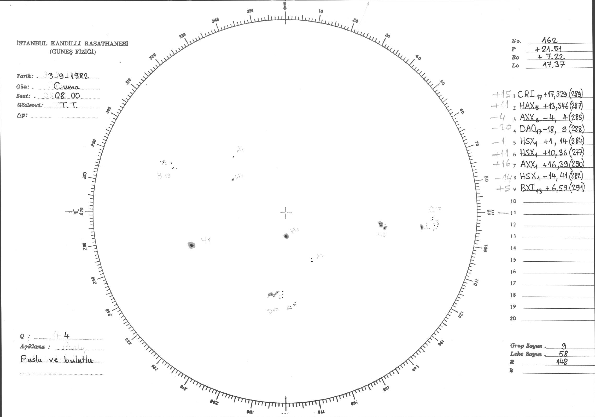 Güneş Lekesi Çizimi - 03.09.1982