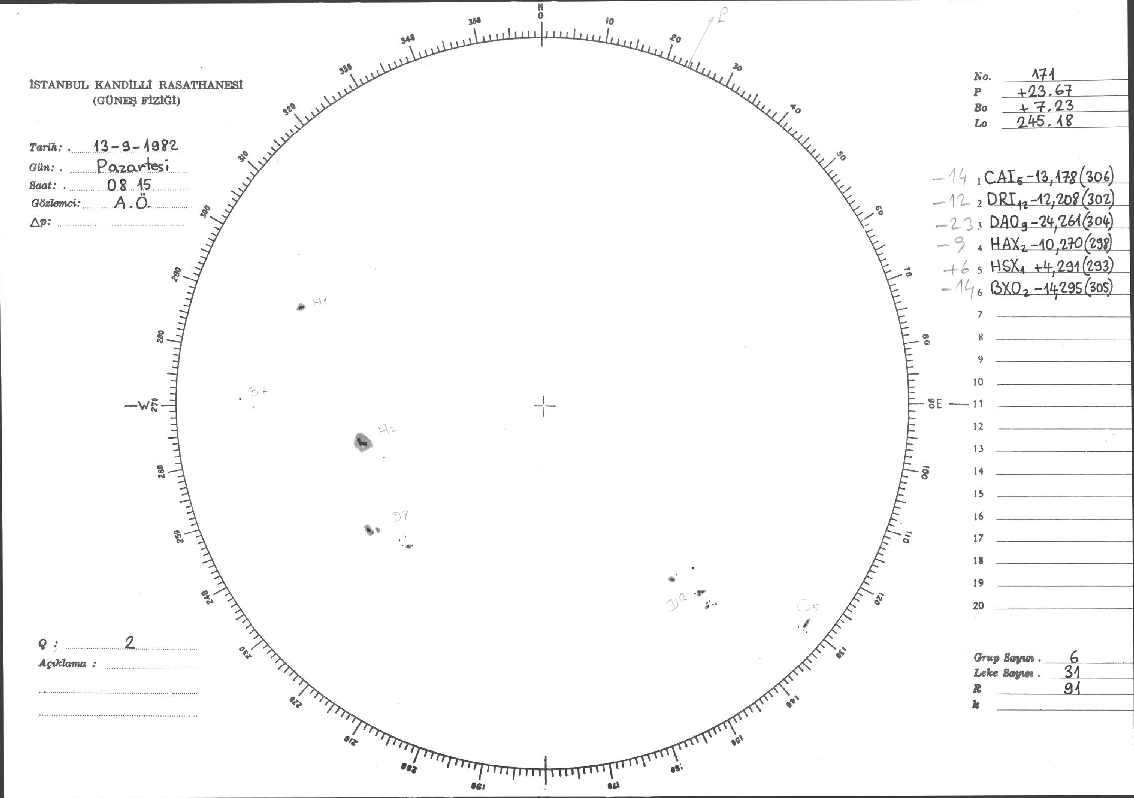 Güneş Lekesi Çizimi - 13.09.1982