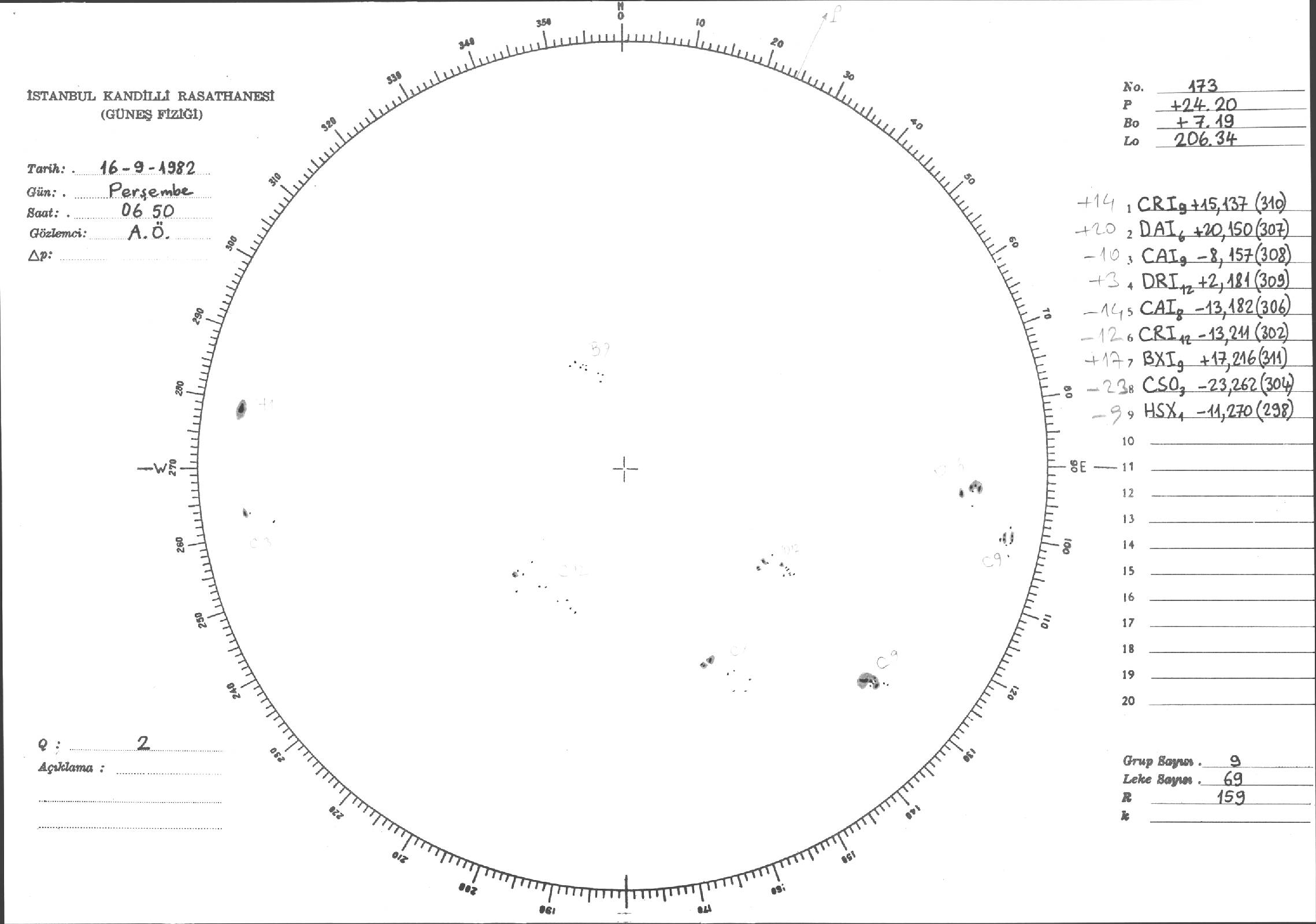 Güneş Lekesi Çizimi - 16.09.1982