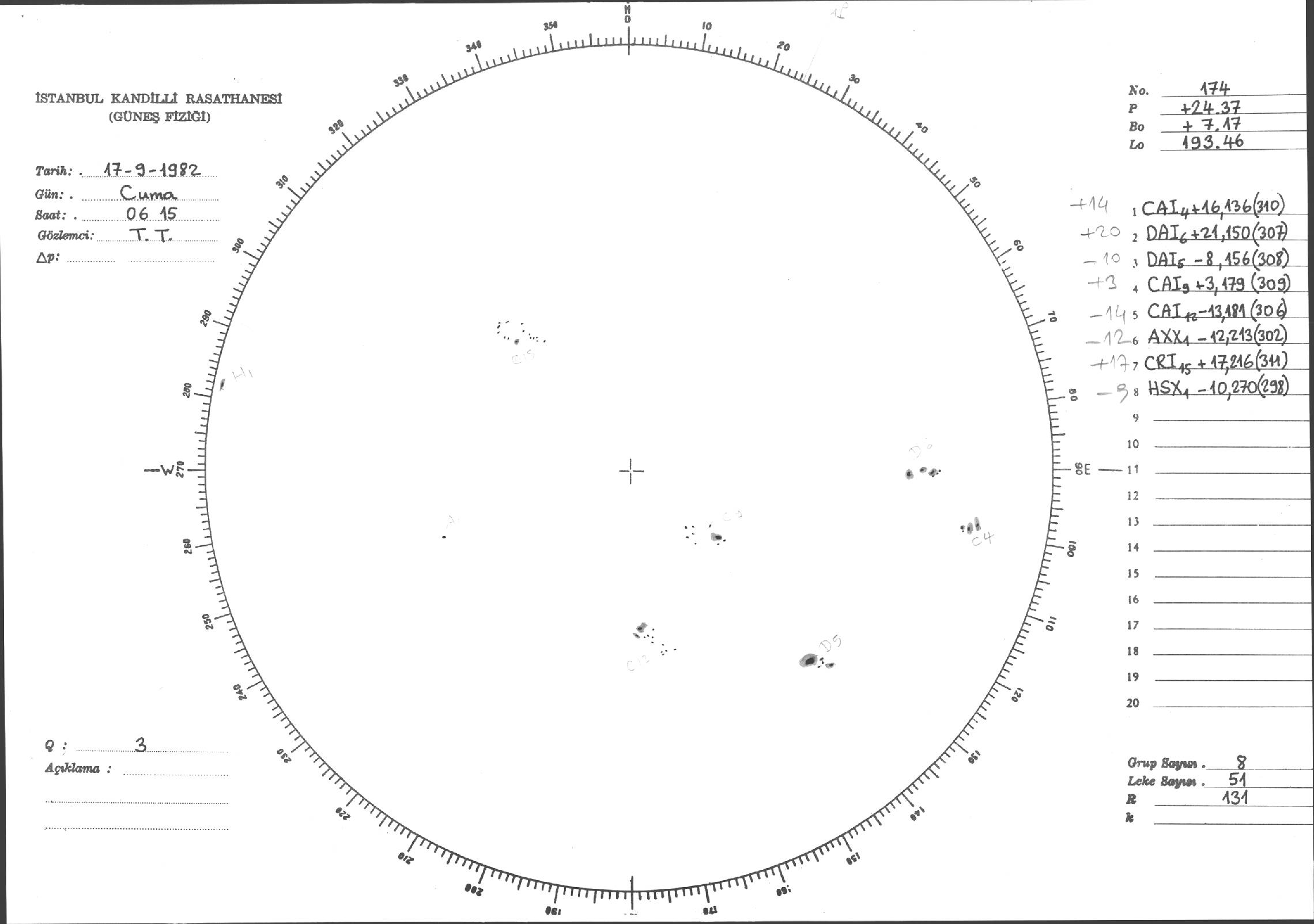 Güneş Lekesi Çizimi - 17.09.1982