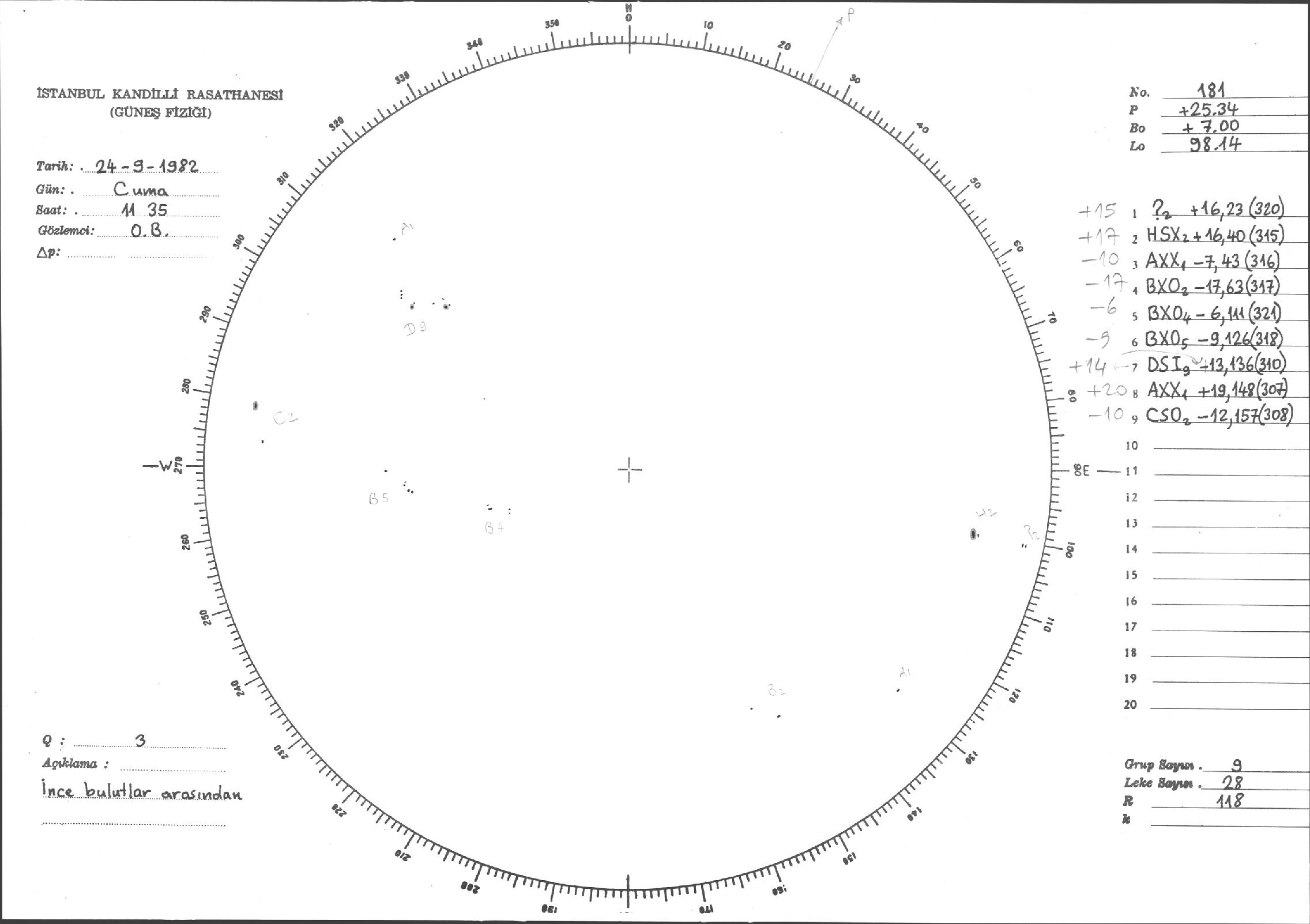 Güneş Lekesi Çizimi - 24.09.1982