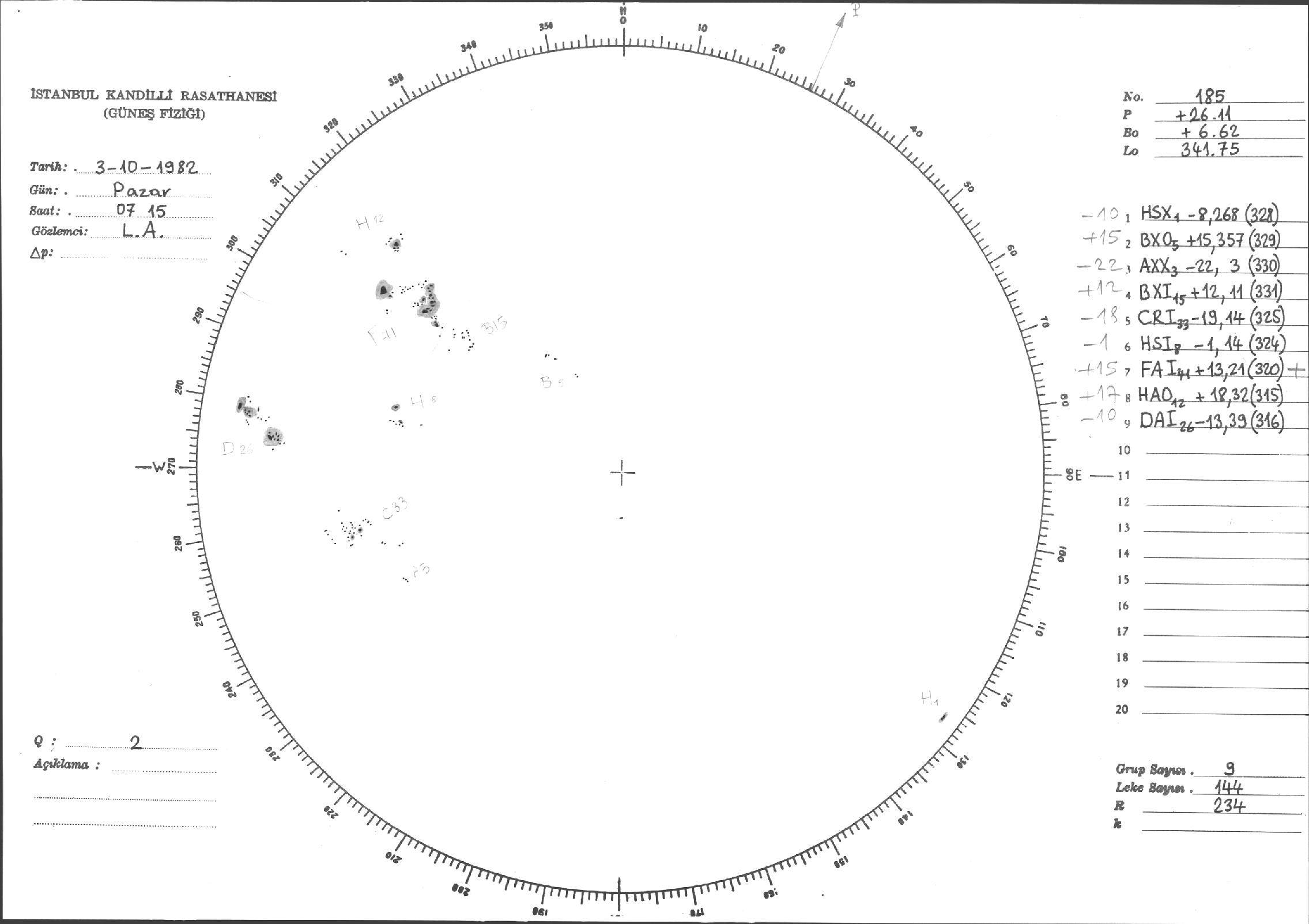 Güneş Lekesi Çizimi - 03.10.1982