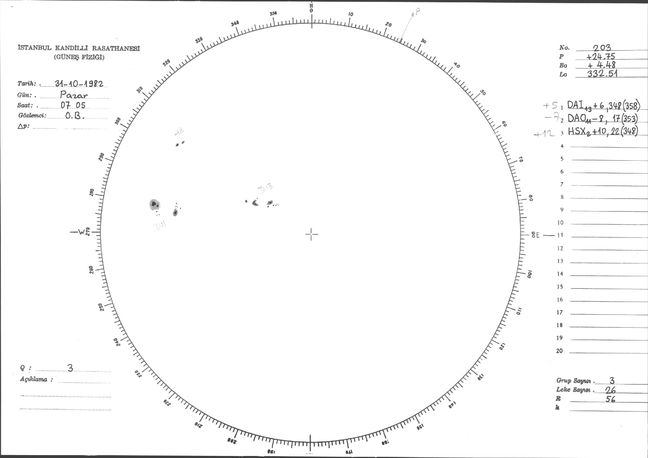 Güneş Lekesi Çizimi - 31.10.1982