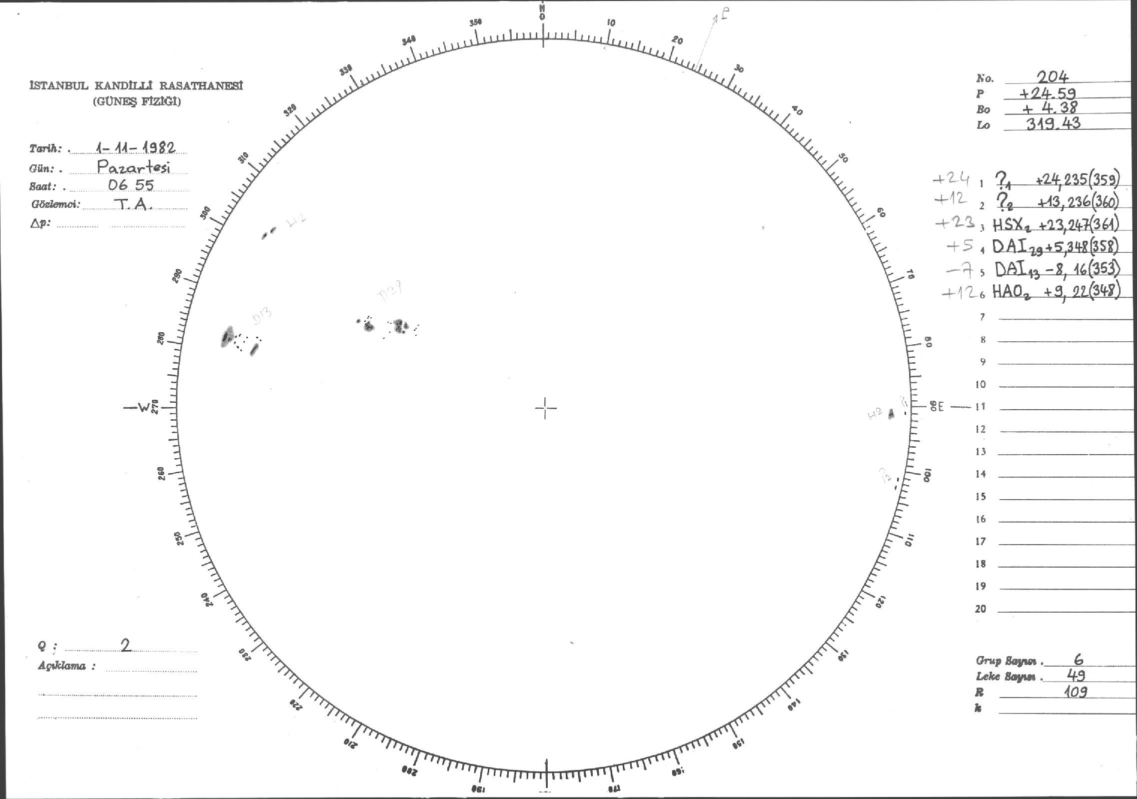 Güneş Lekesi Çizimi - 01.11.1982