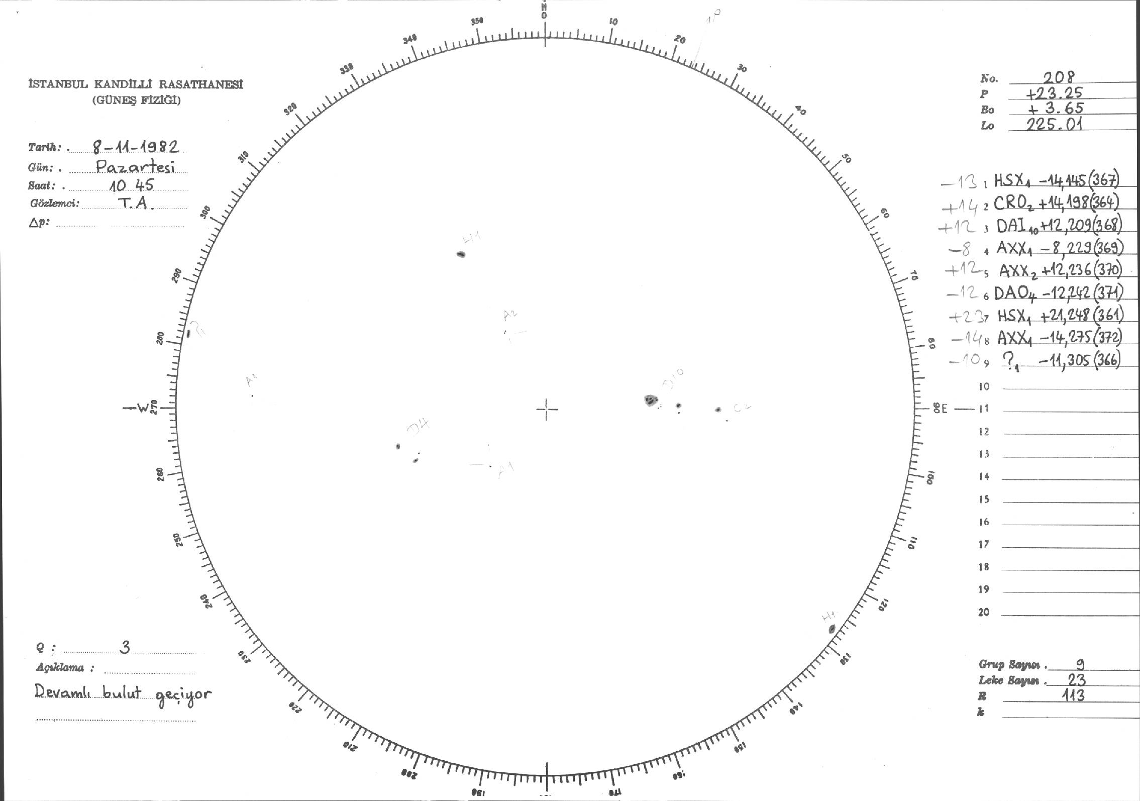 Güneş Lekesi Çizimi - 08.11.1982
