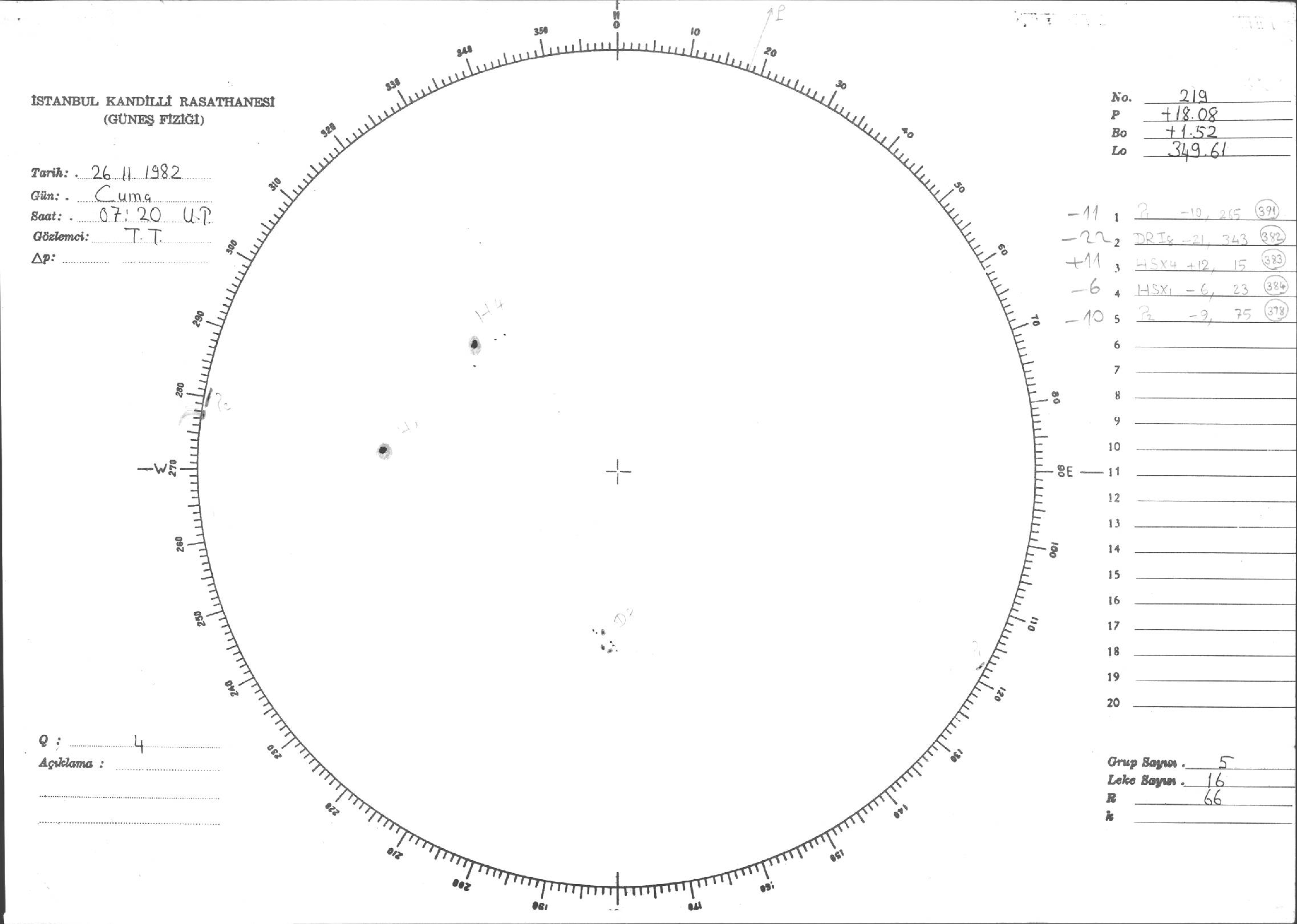 Güneş Lekesi Çizimi - 26.11.1982