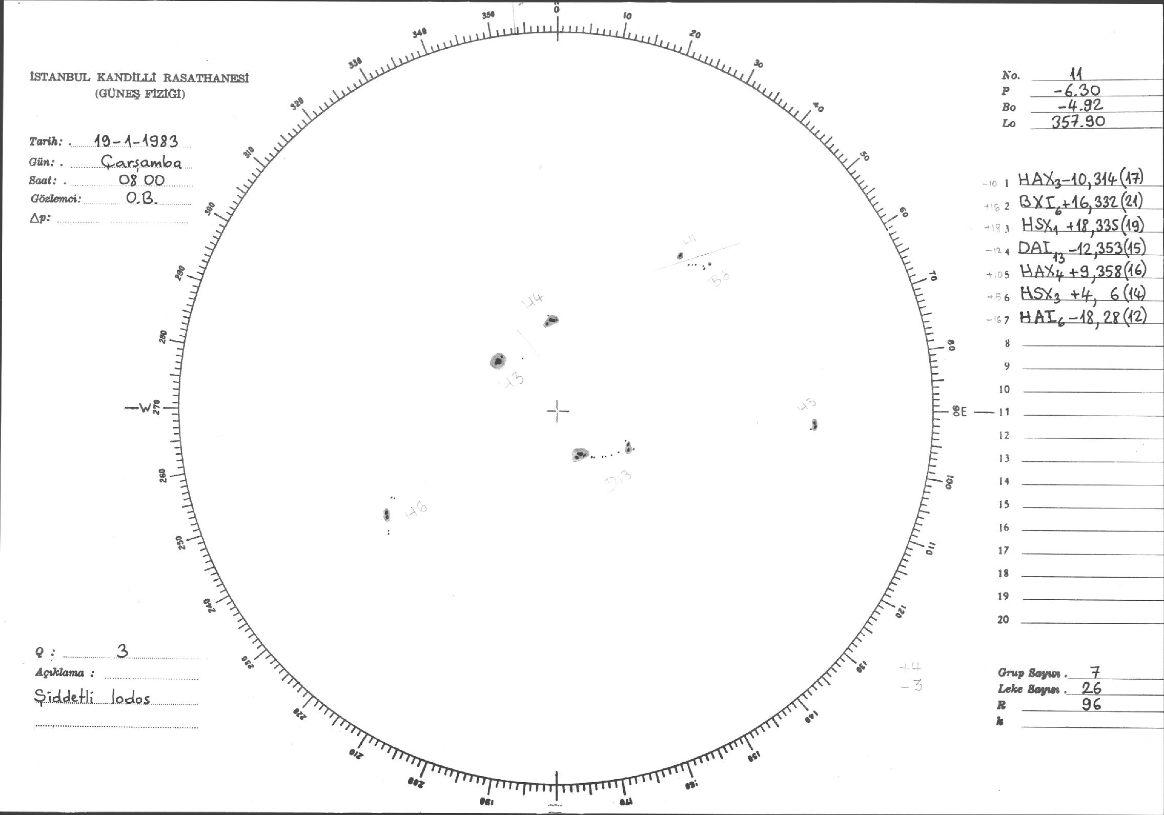Güneş Lekesi Çizimi - 19.01.1983