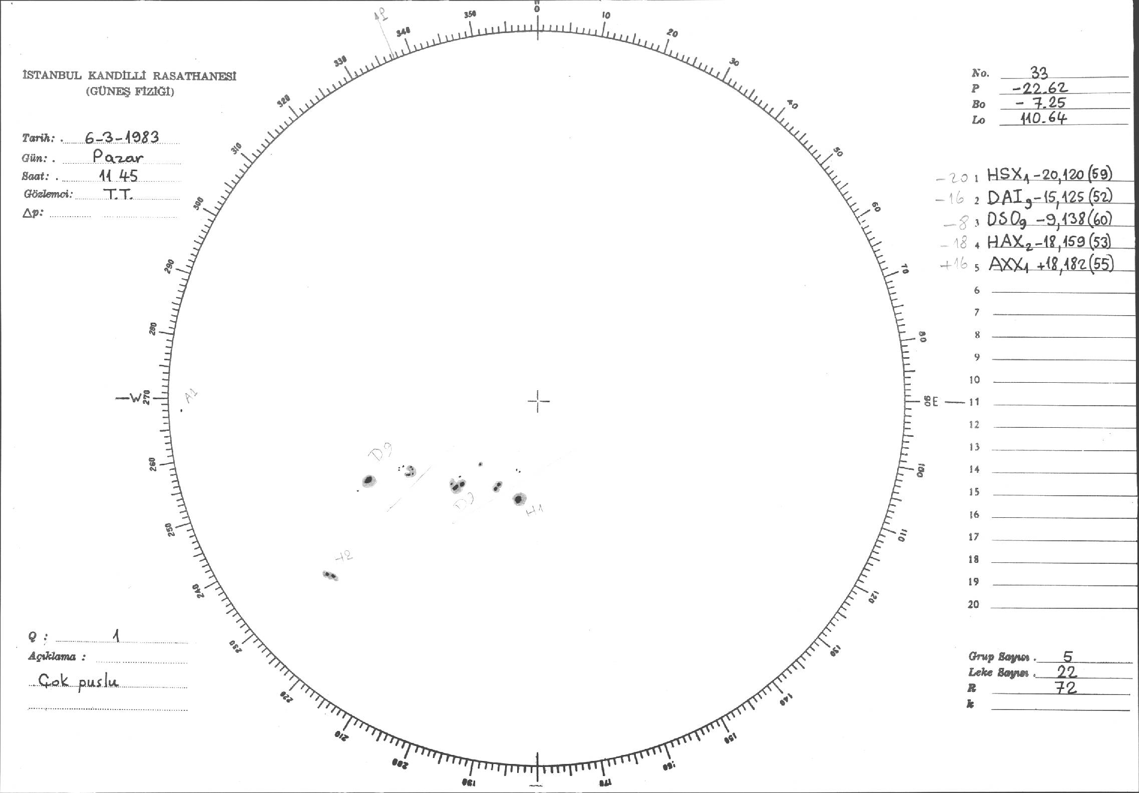 Güneş Lekesi Çizimi - 06.03.1983