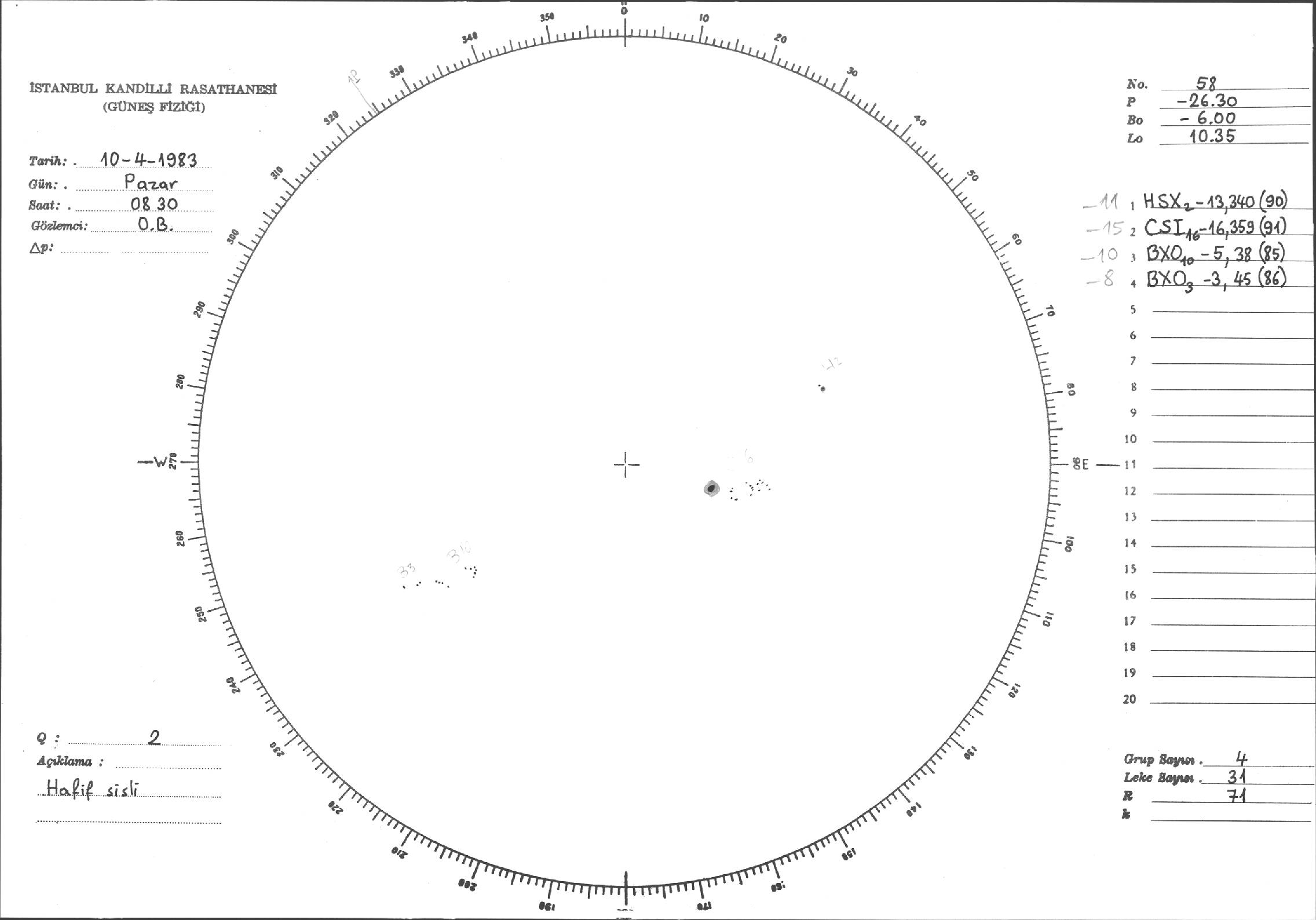 Güneş Lekesi Çizimi - 10.04.1983
