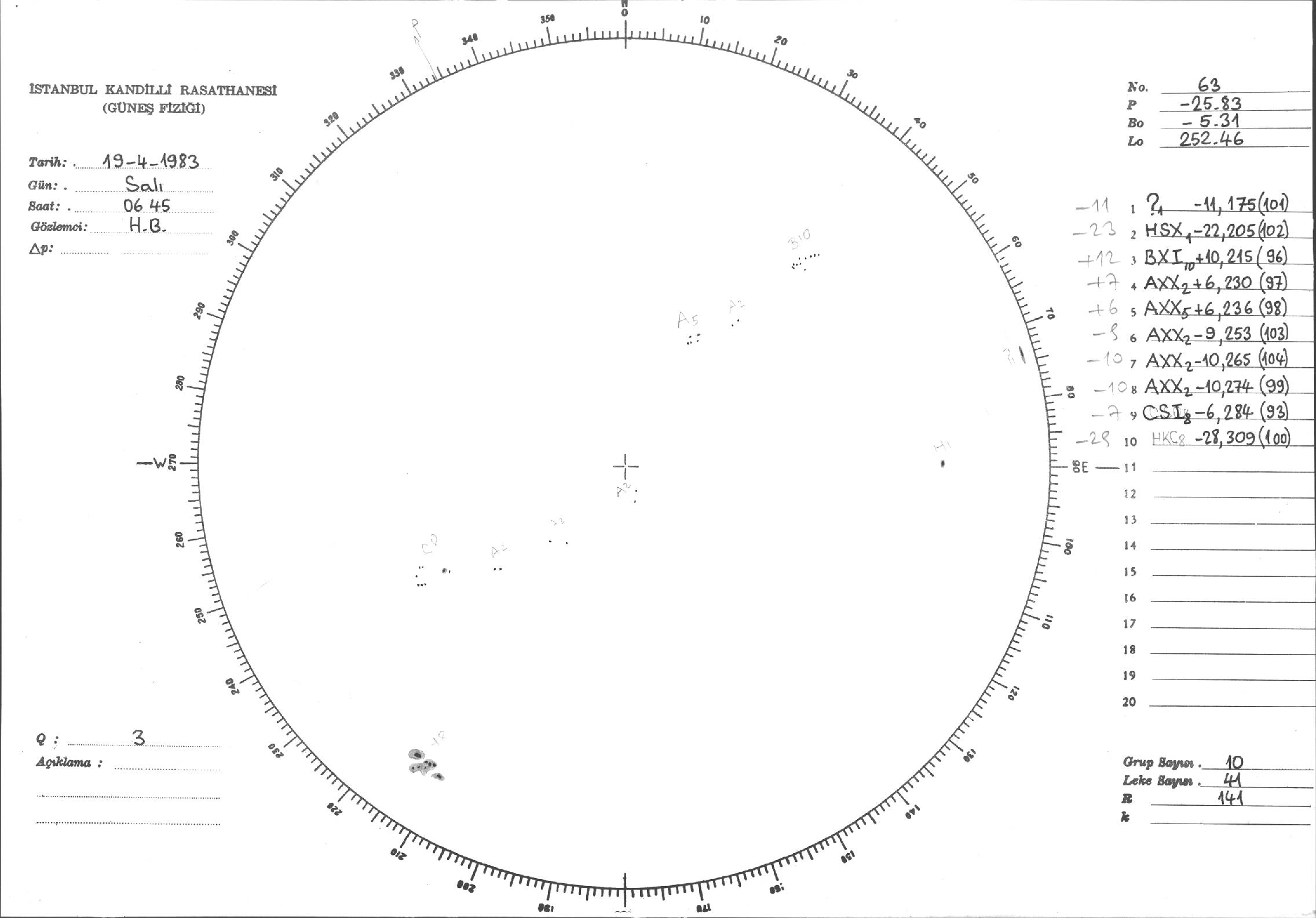 Güneş Lekesi Çizimi - 19.04.1983