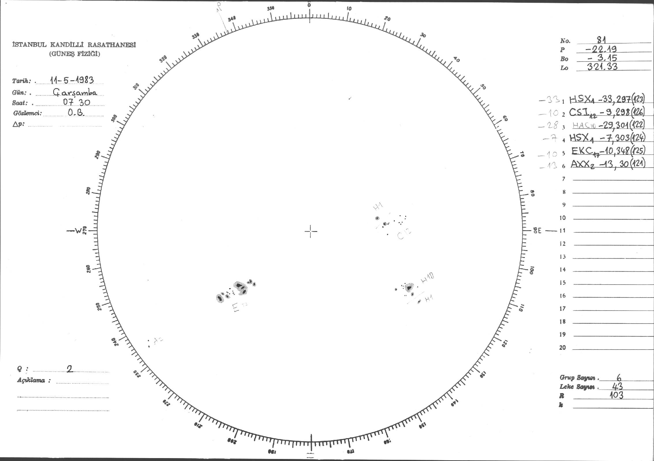 Güneş Lekesi Çizimi - 11.05.1983