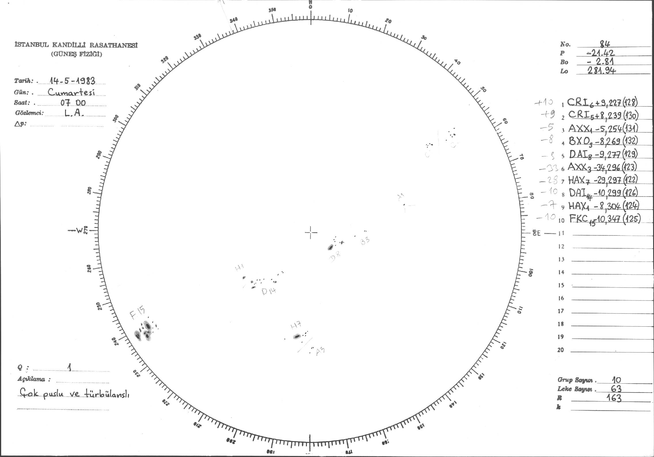 Güneş Lekesi Çizimi - 14.05.1983