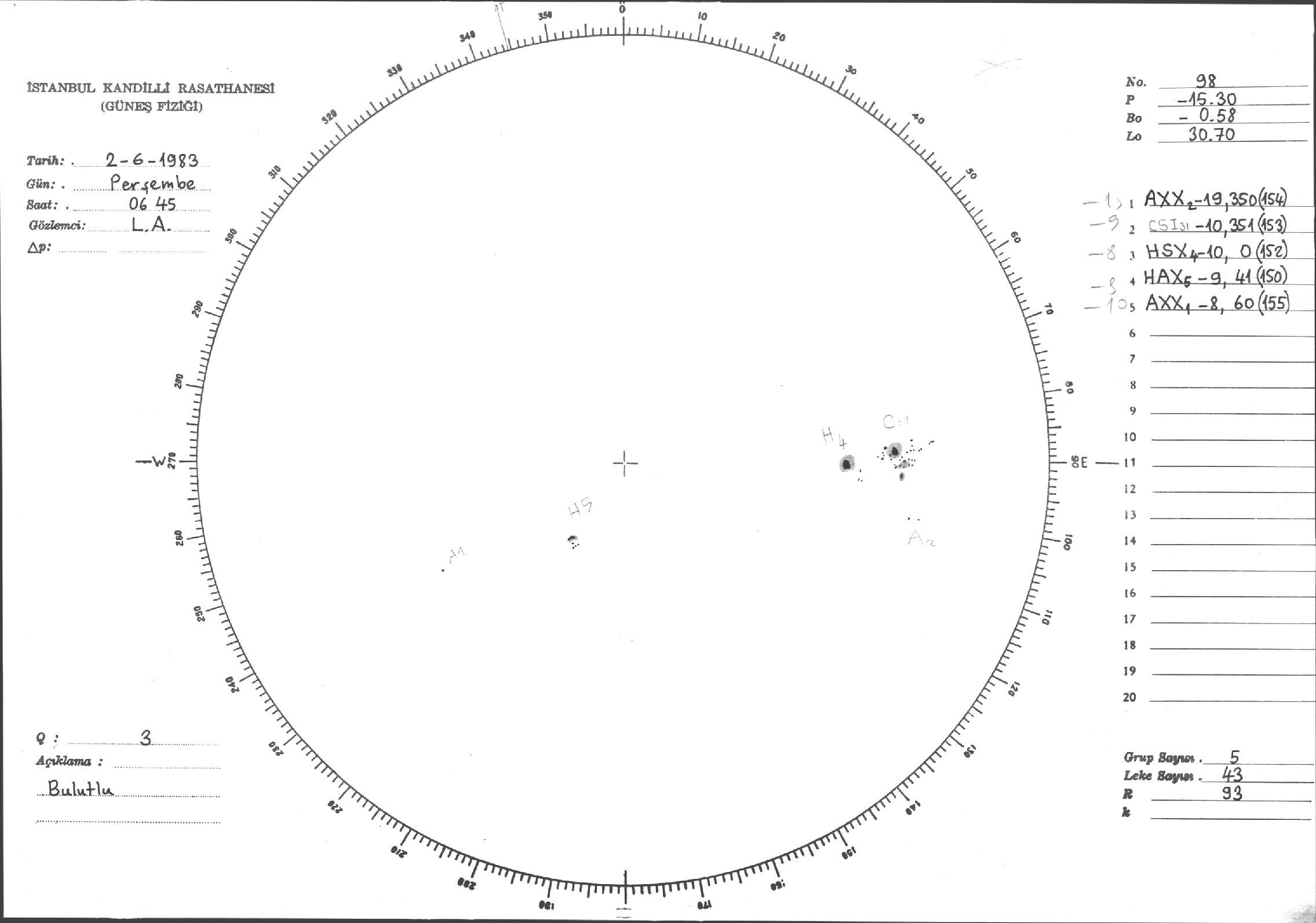 Güneş Lekesi Çizimi - 02.06.1983