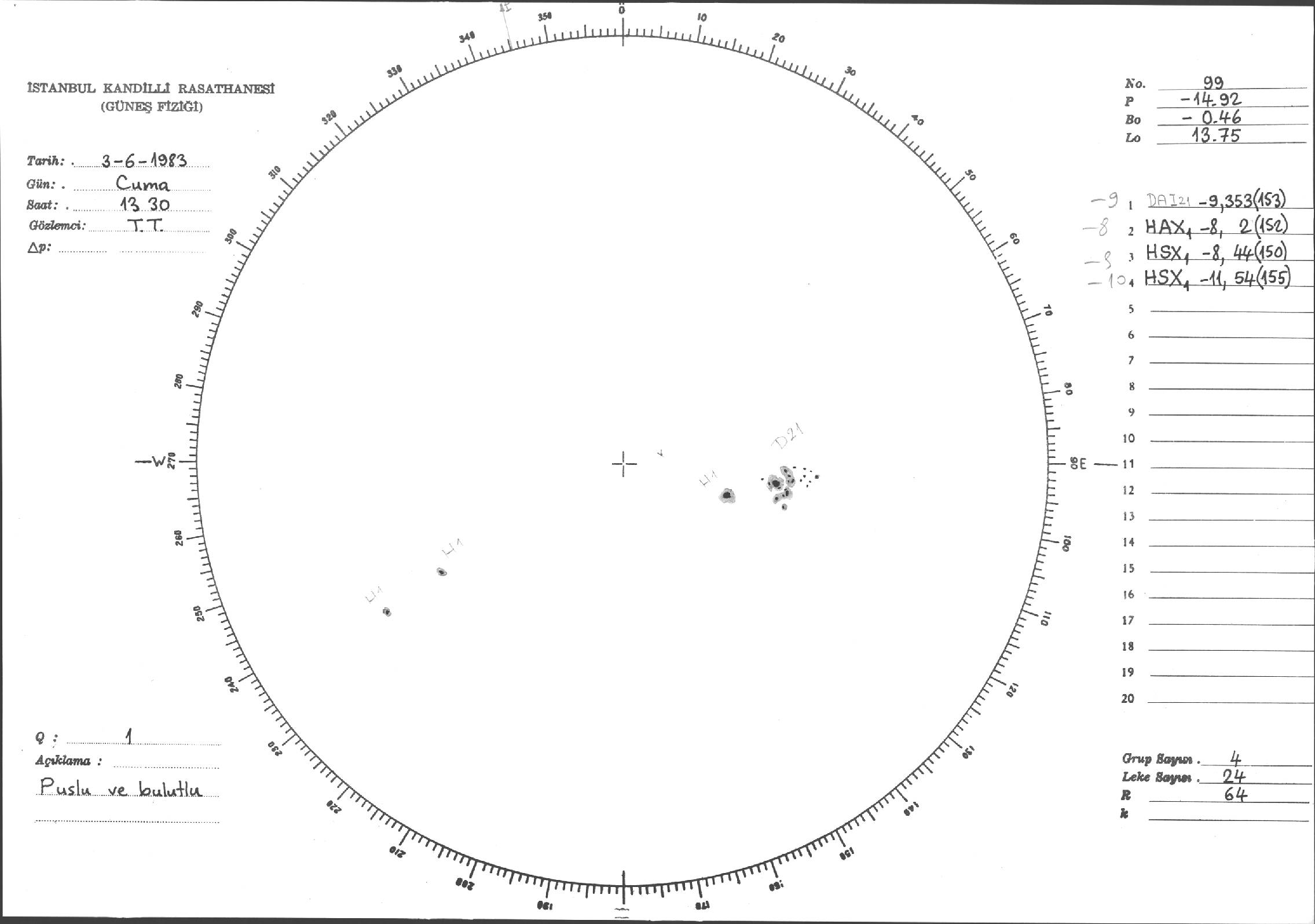 Güneş Lekesi Çizimi - 03.06.1983