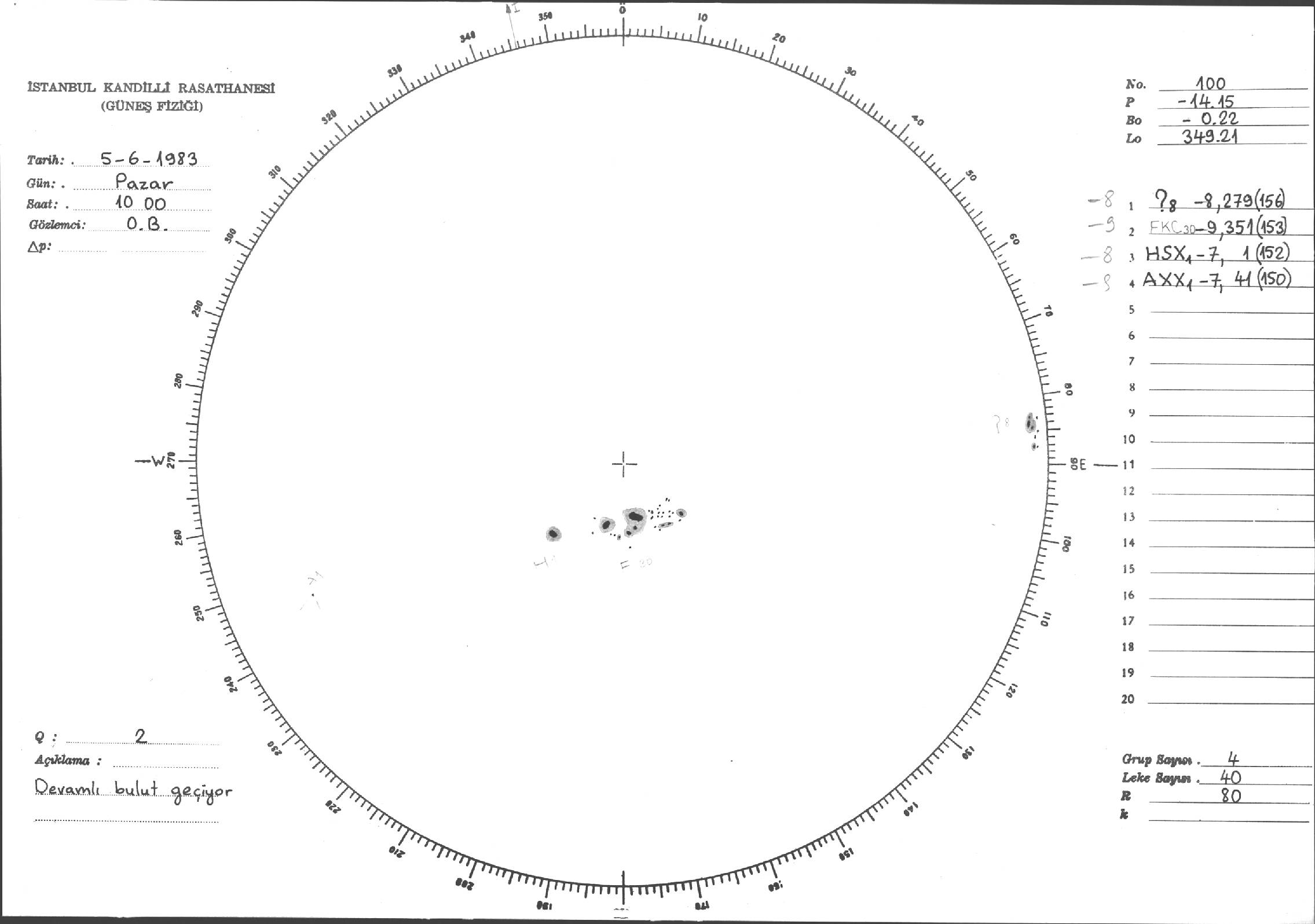 Güneş Lekesi Çizimi - 05.06.1983