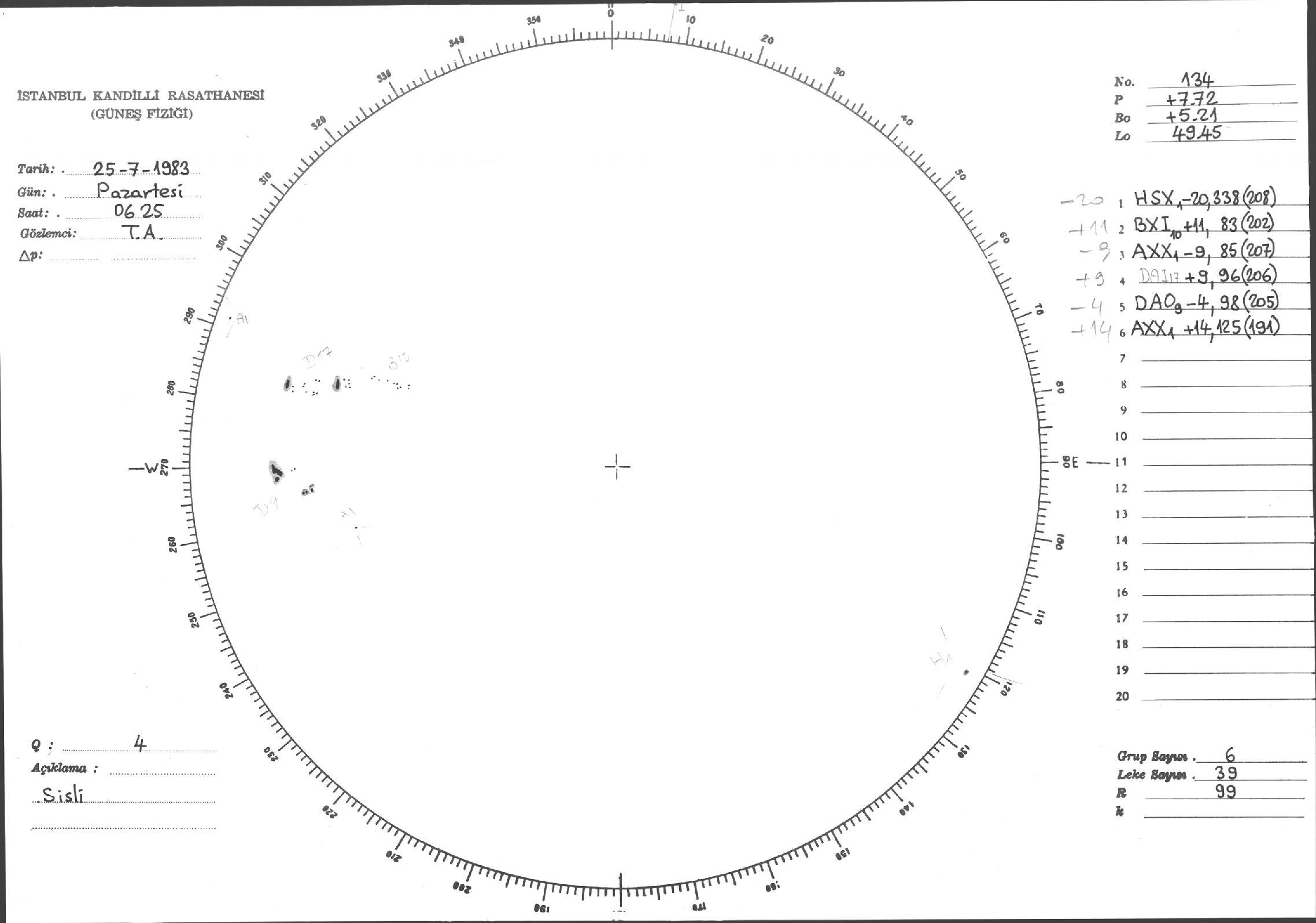 Güneş Lekesi Çizimi - 25.07.1983