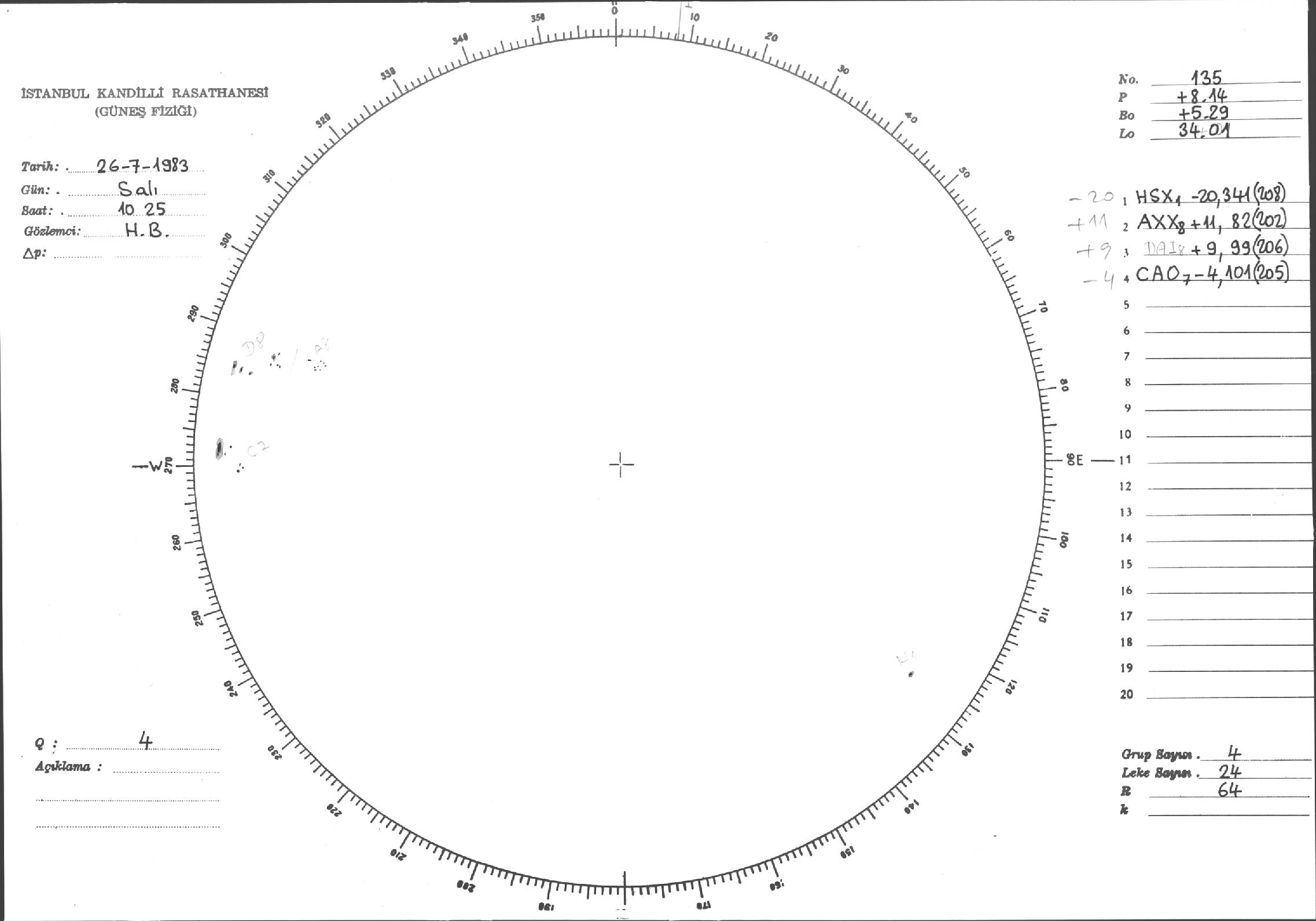 Güneş Lekesi Çizimi - 26.07.1983