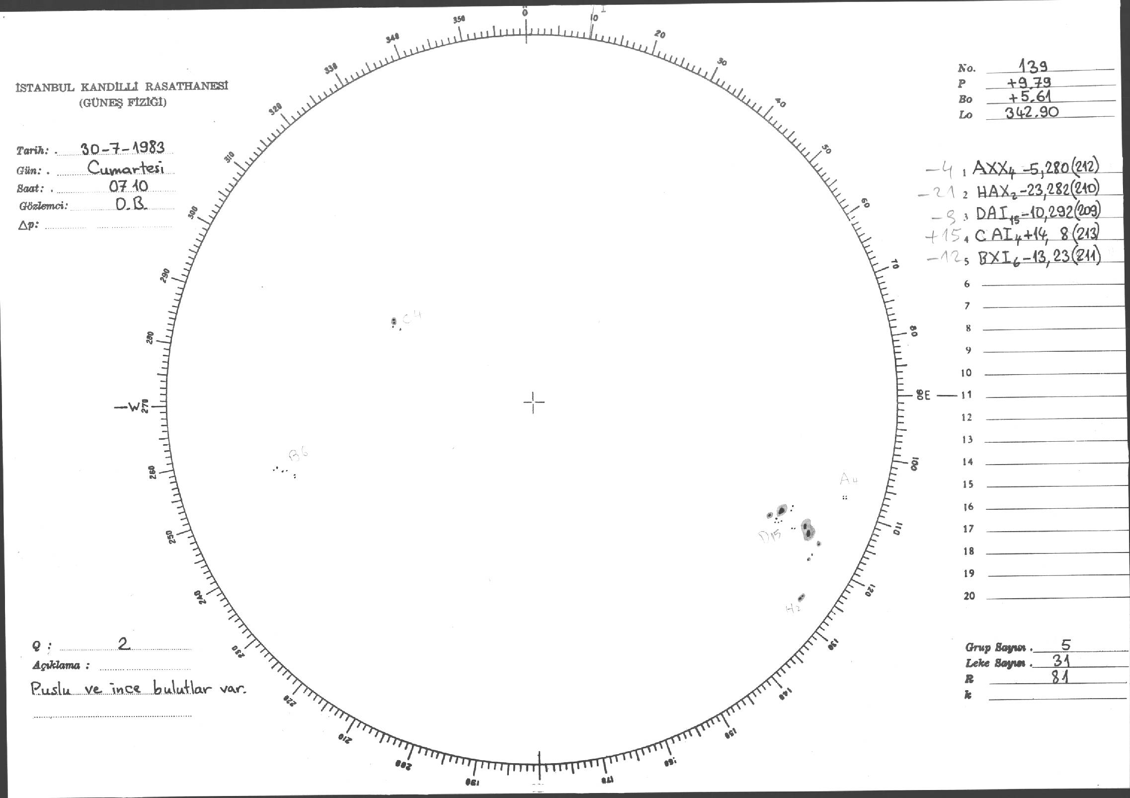 Güneş Lekesi Çizimi - 30.07.1983