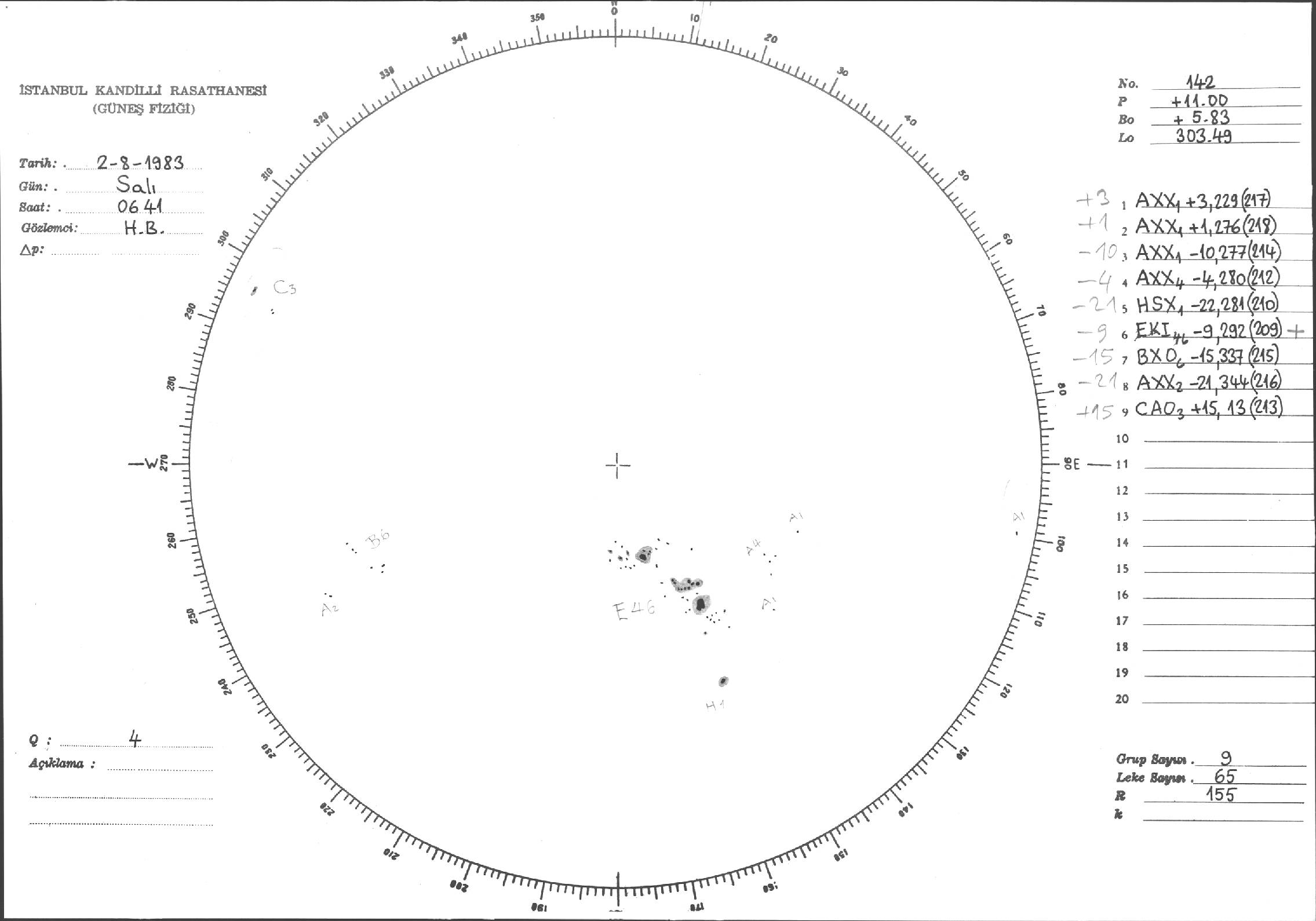 Güneş Lekesi Çizimi - 02.08.1983
