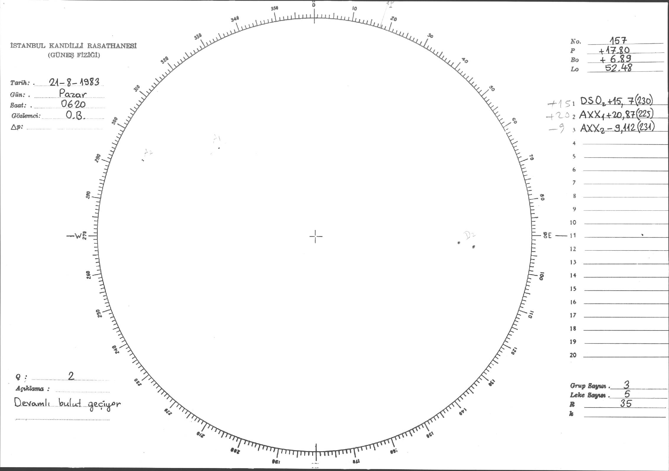 Güneş Lekesi Çizimi - 21.08.1983