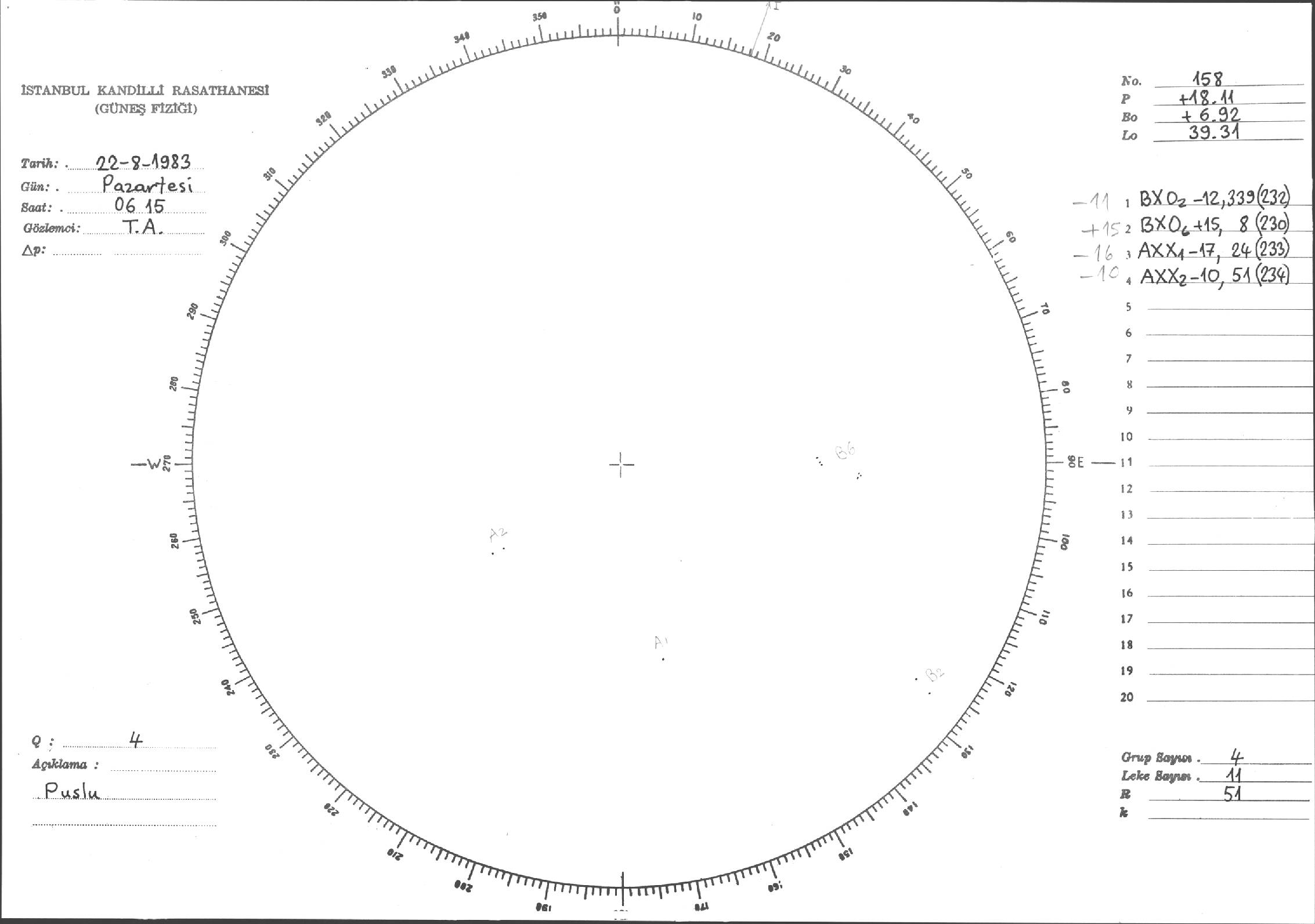 Güneş Lekesi Çizimi - 22.08.1983
