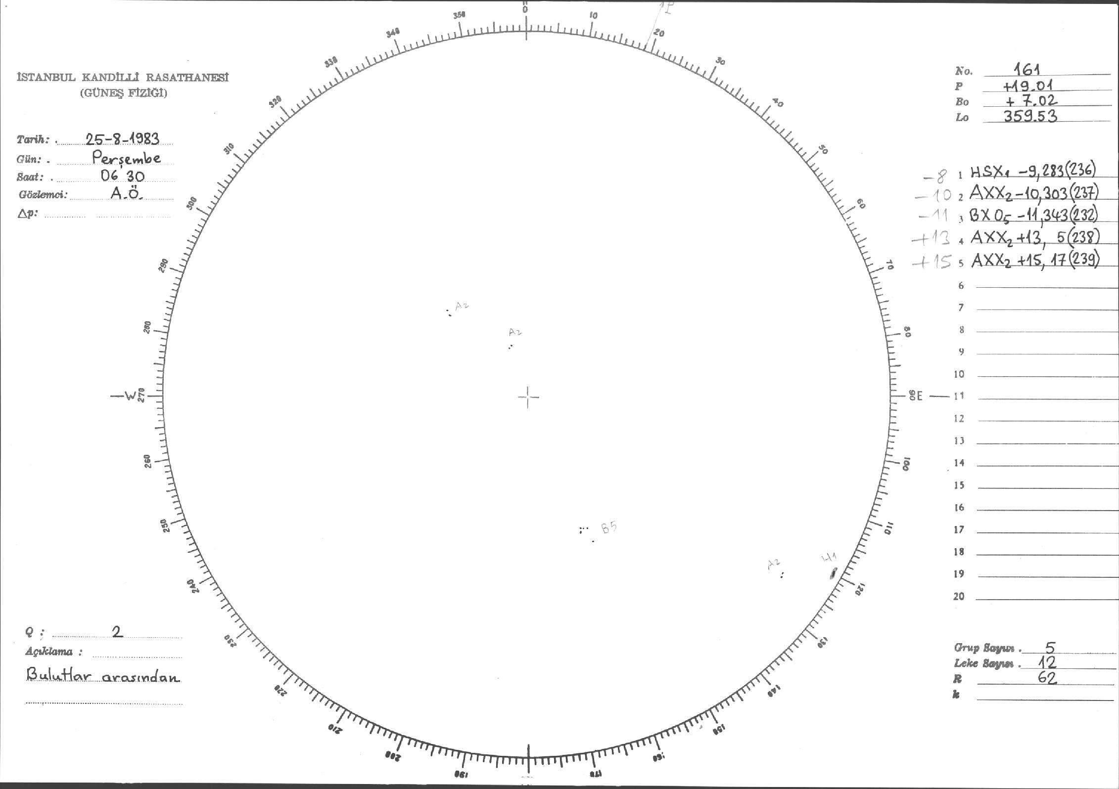 Güneş Lekesi Çizimi - 25.08.1983
