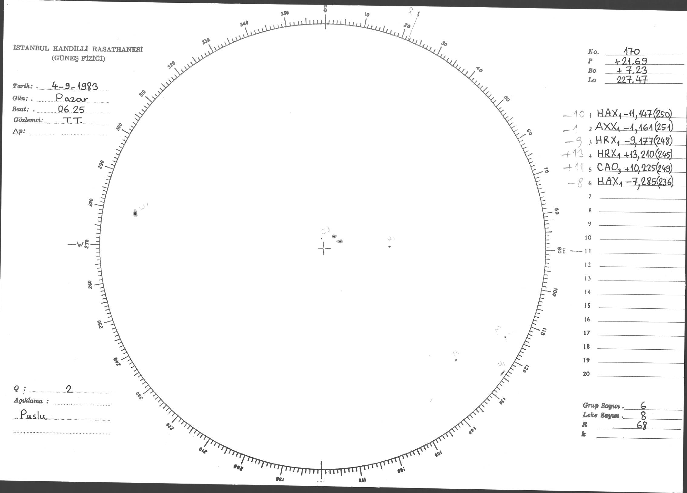 Güneş Lekesi Çizimi - 04.09.1983