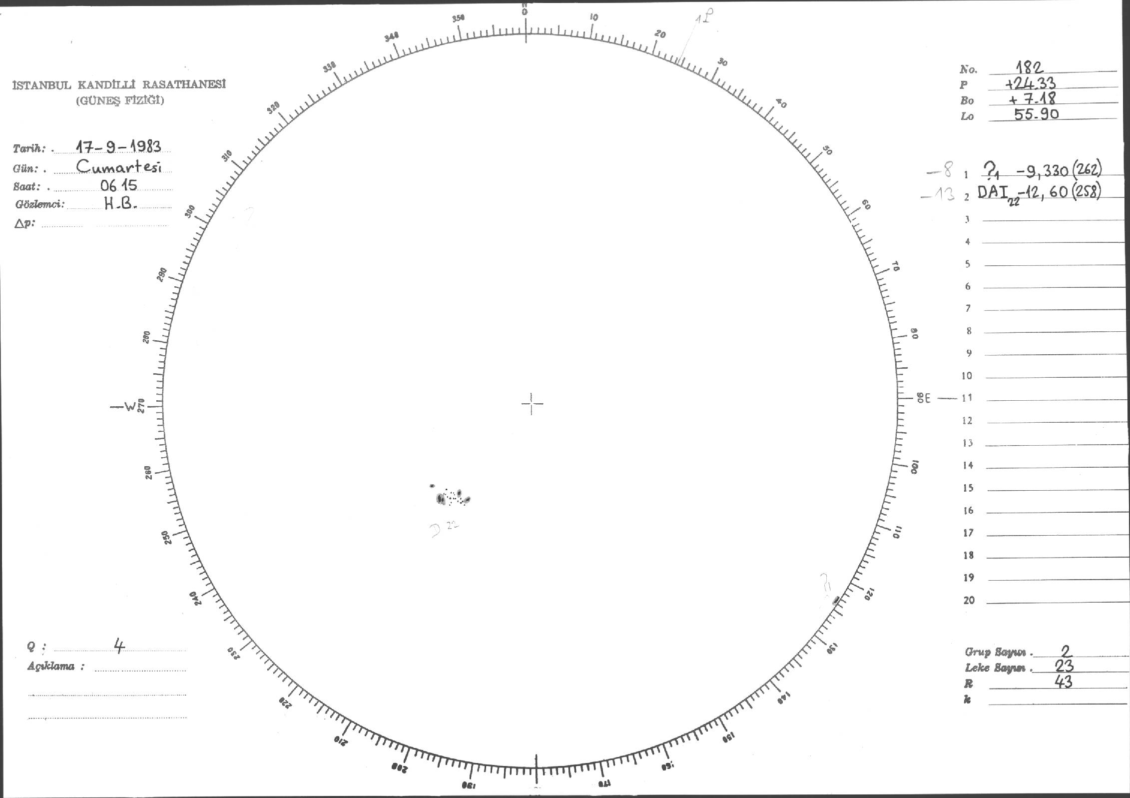 Güneş Lekesi Çizimi - 17.09.1983