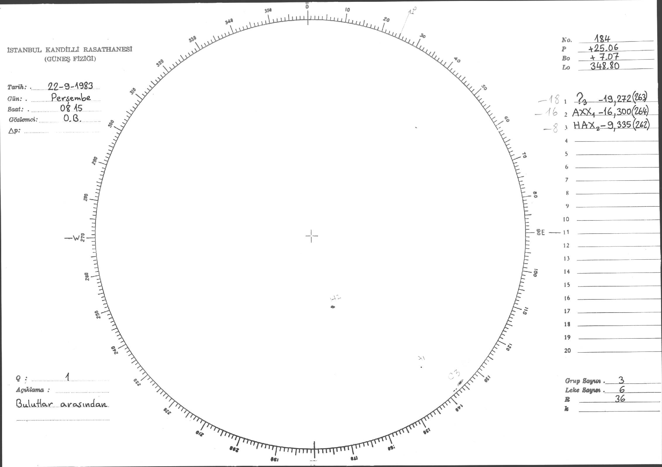 Güneş Lekesi Çizimi - 22.09.1983