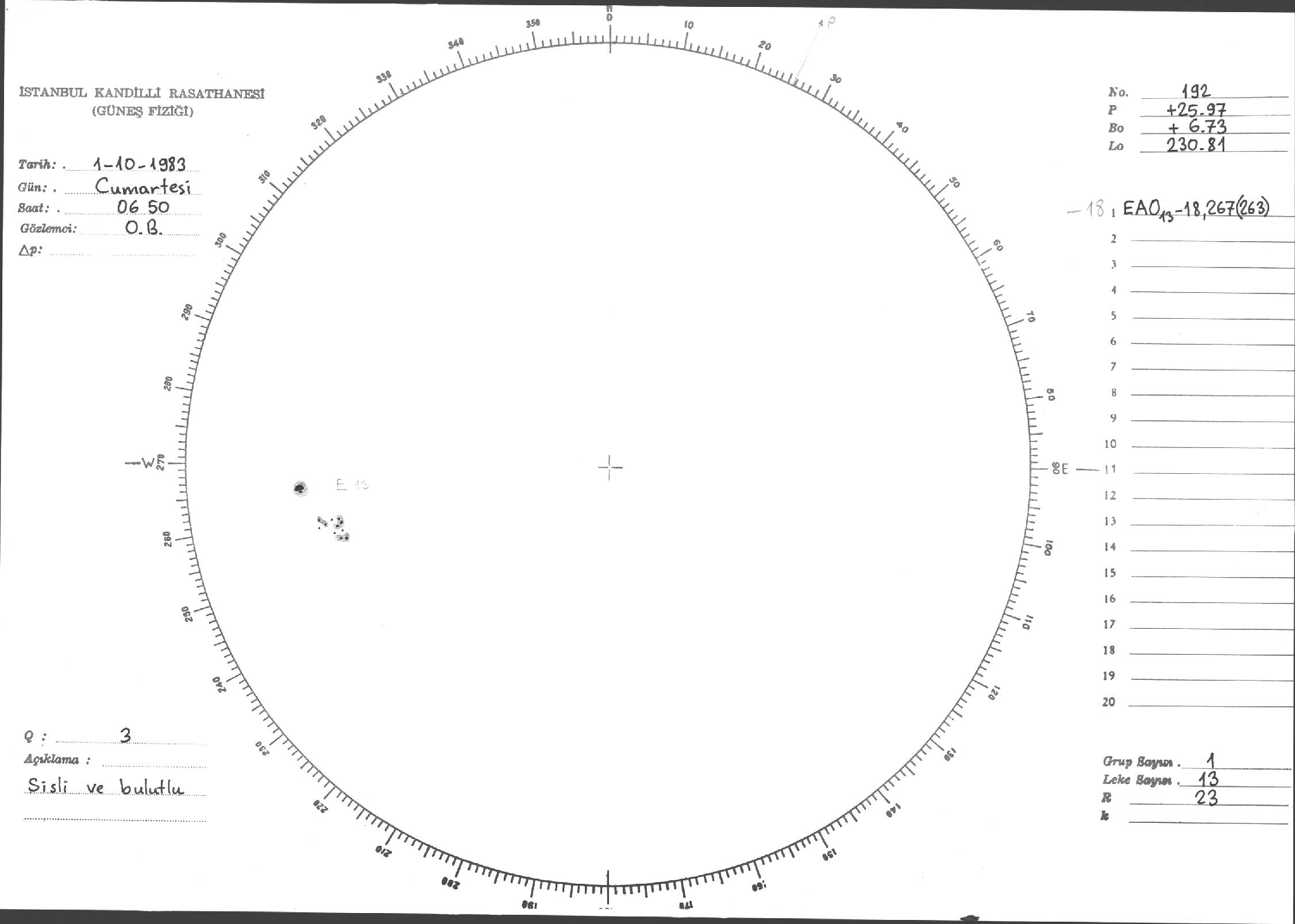 Güneş Lekesi Çizimi - 01.10.1983
