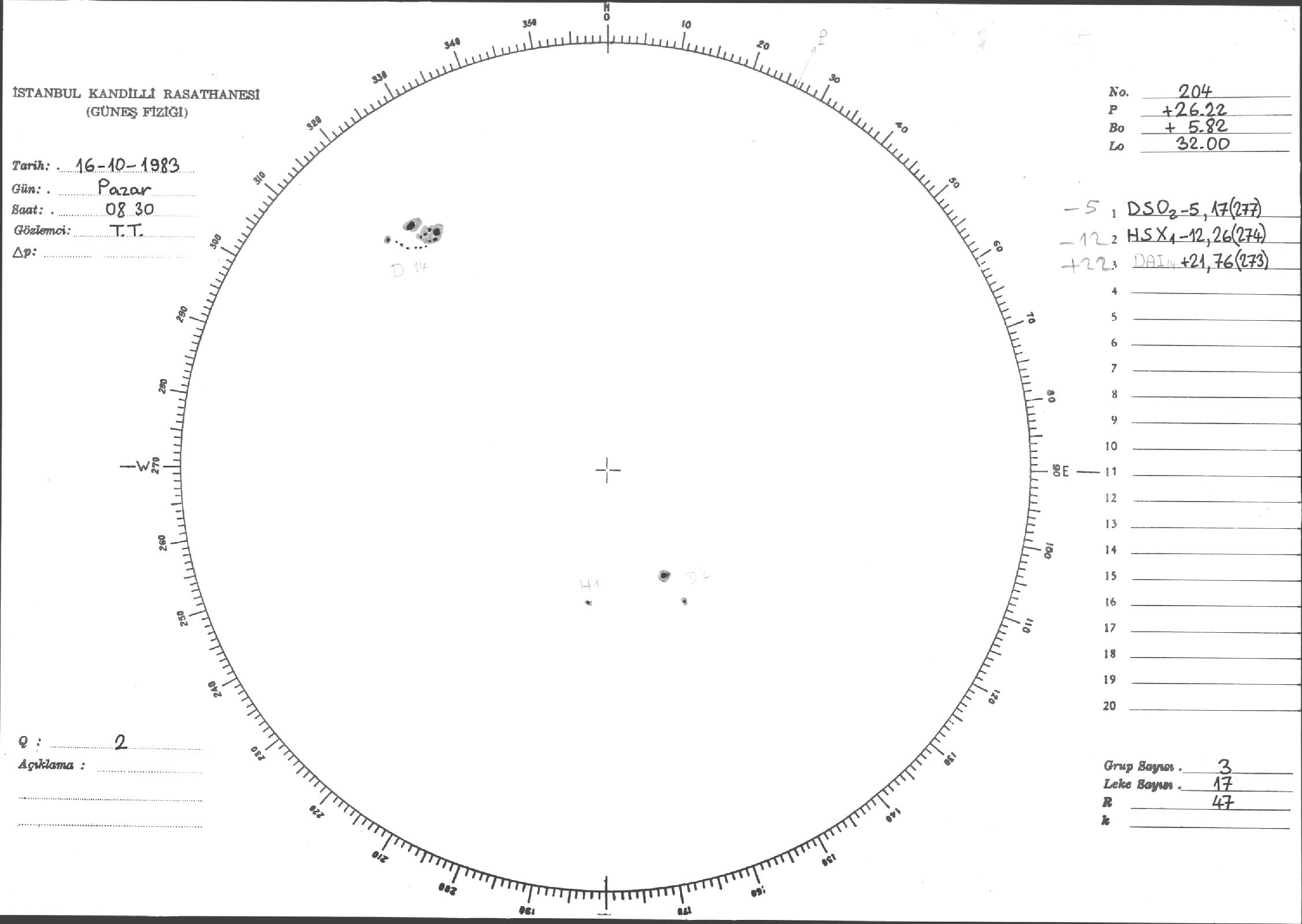 Güneş Lekesi Çizimi - 16.10.1983