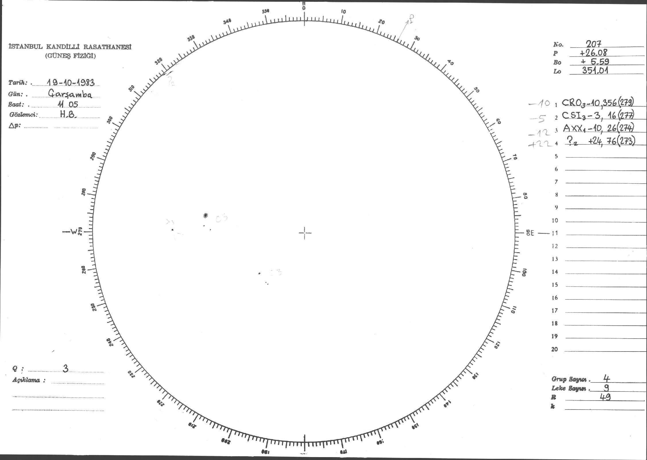 Güneş Lekesi Çizimi - 19.10.1983