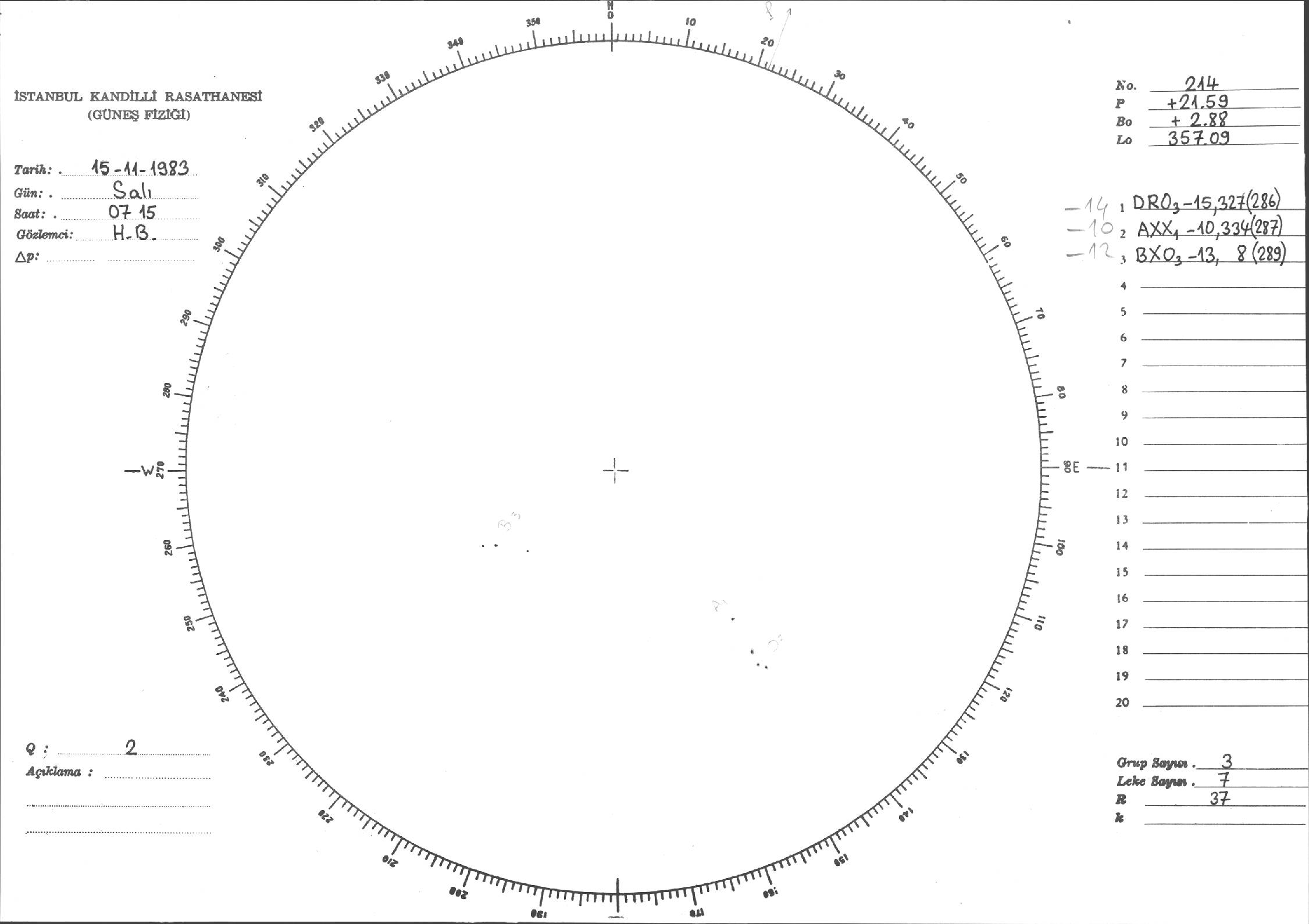 Güneş Lekesi Çizimi - 15.11.1983