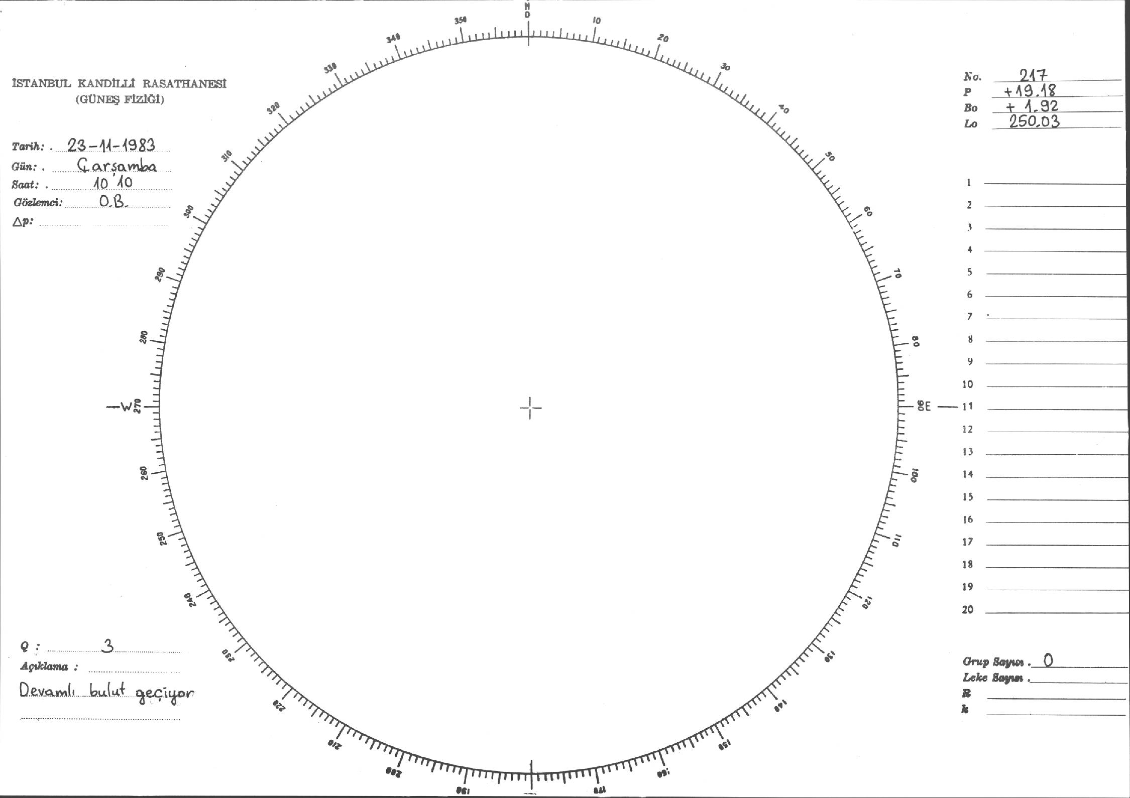 Güneş Lekesi Çizimi - 23.11.1983